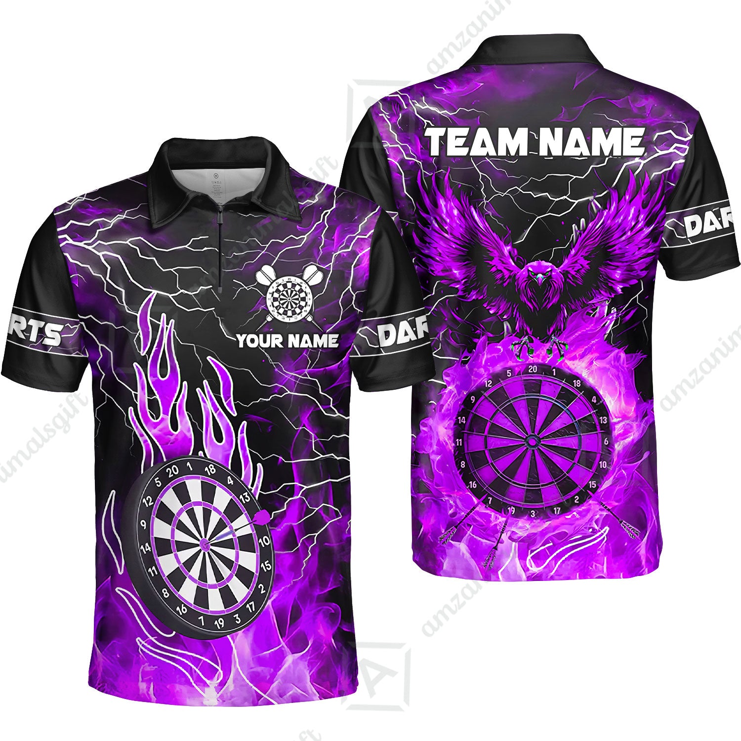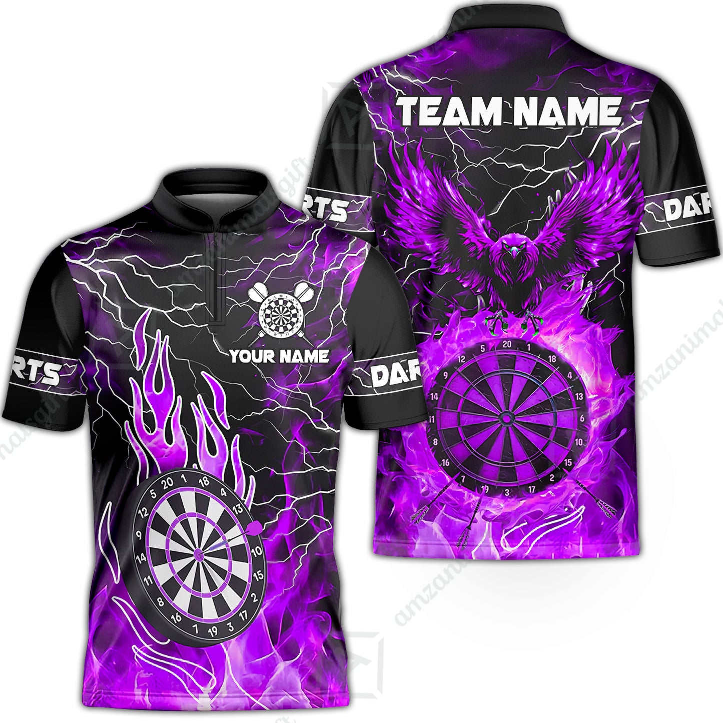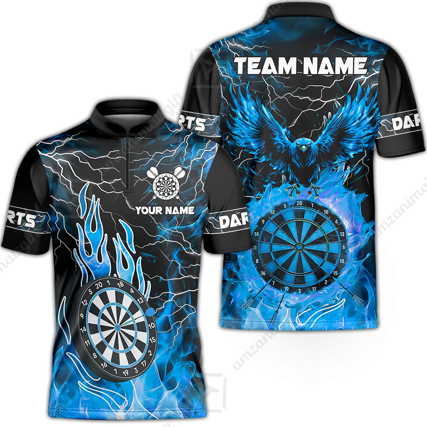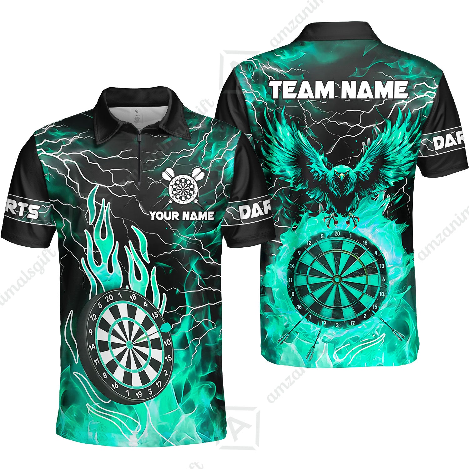 Custom Darts Team Jersey, Dartboard Fire Flame Custom Eagle Darts Jersey Polo Quarter-Zip Shirts, Custom Name And Team Name Darts Uniforms Jersey