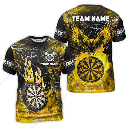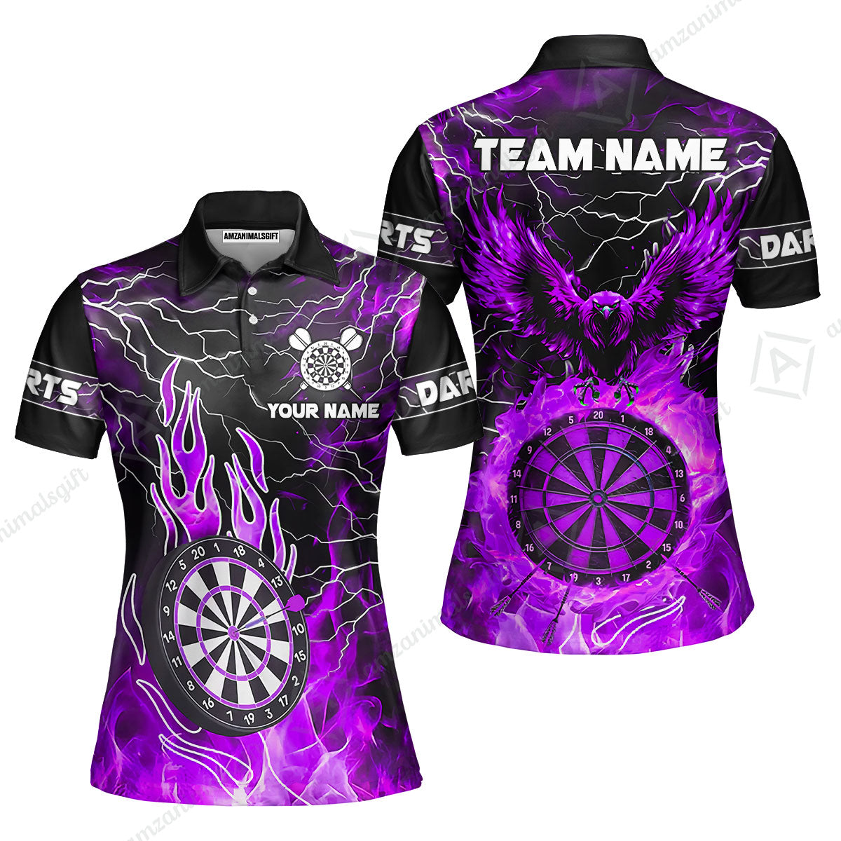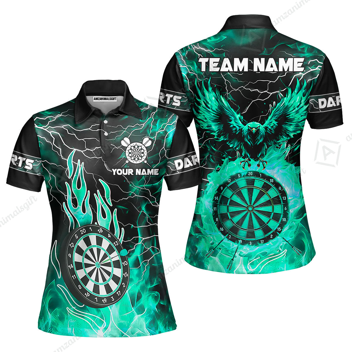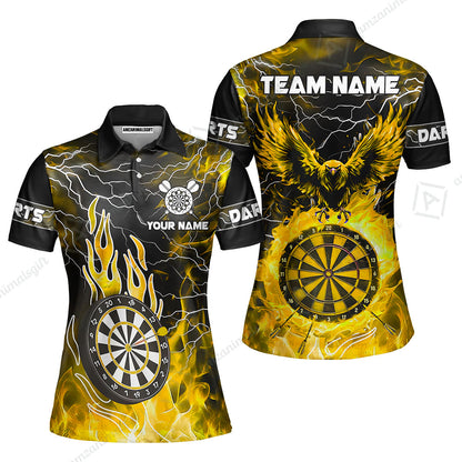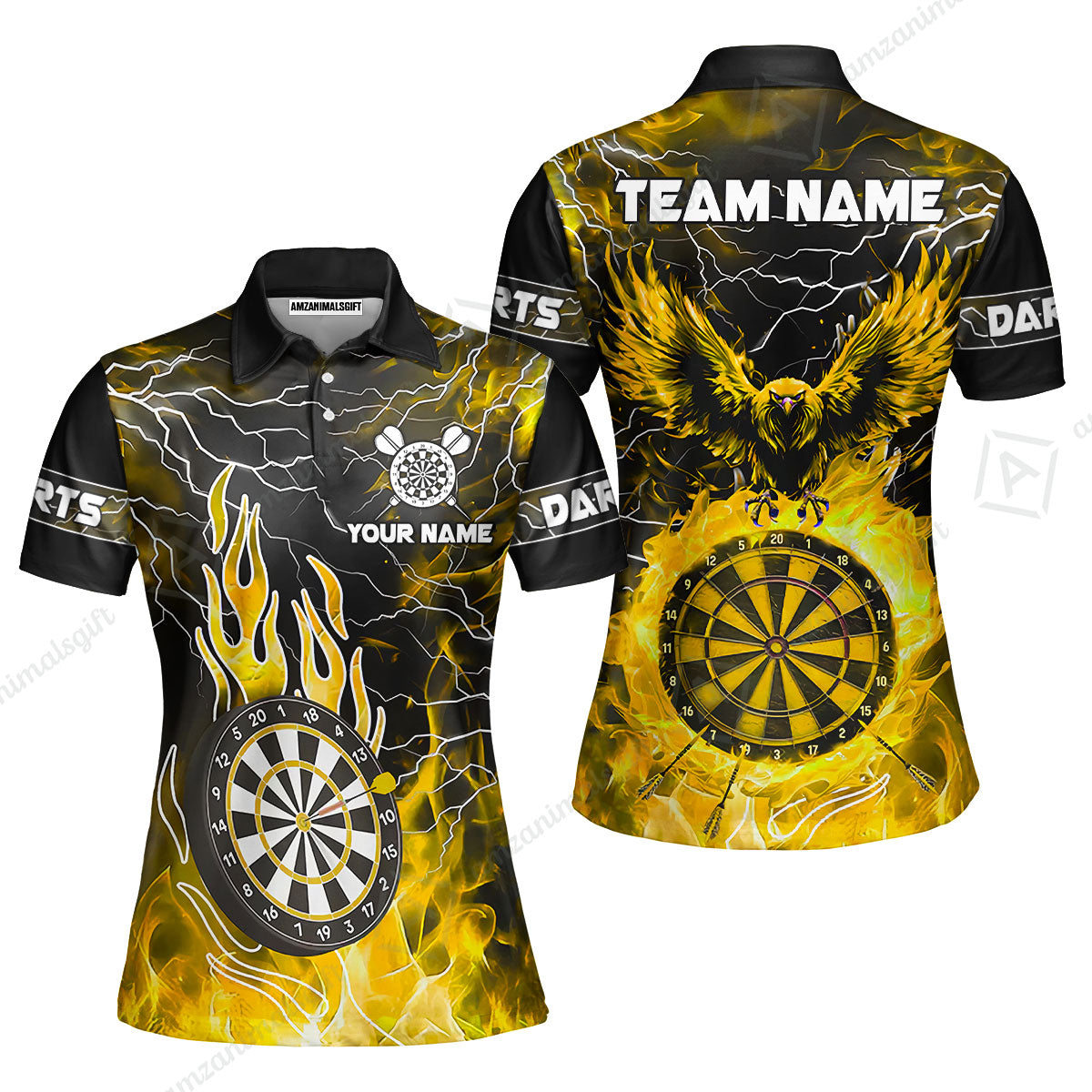 Custom Darts Team Jersey, Dartboard Fire Flame Custom Eagle Darts Jersey Polo Quarter-Zip Shirts, Custom Name And Team Name Darts Uniforms Jersey