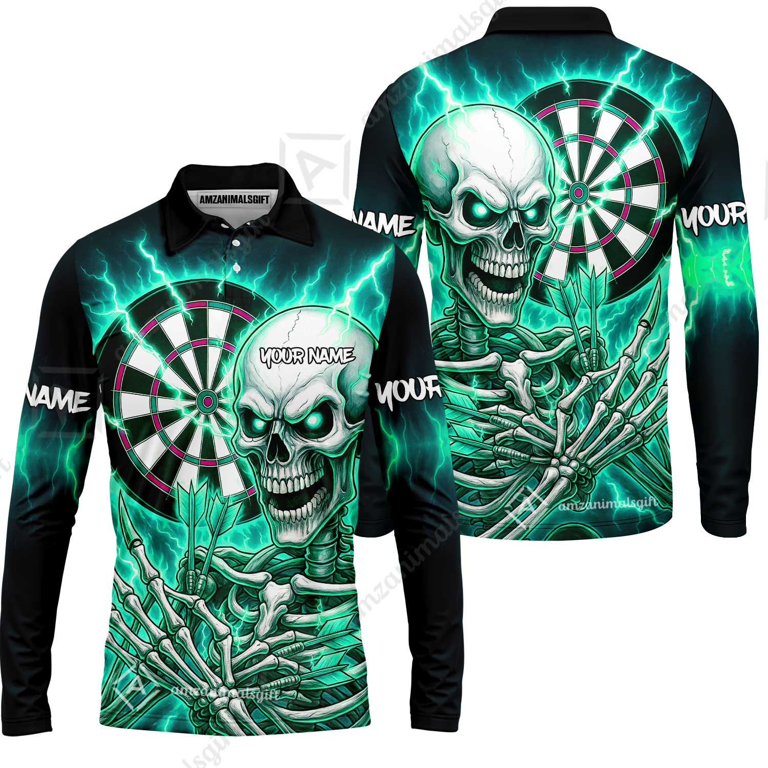 Custom Darts Team Long Sleeve Polo Shirt, Dartboard Electric Skeleton Darts Jersey Long Sleeve Polo Shirt, Custom Darts Uniforms Jersey
