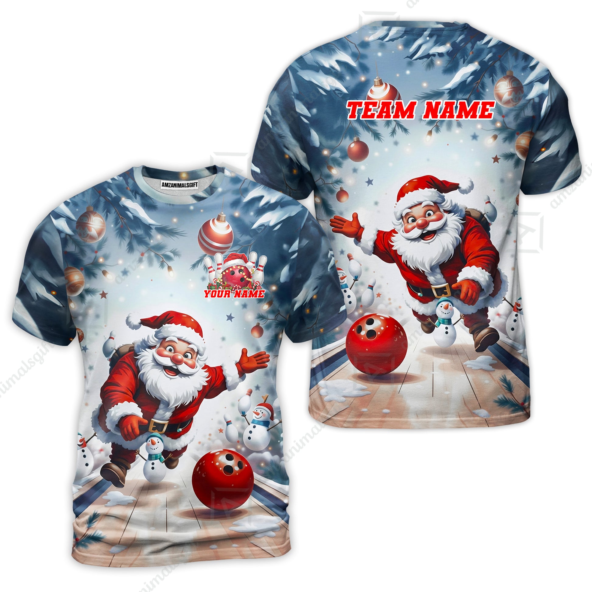 Custom Funny Santa Playing Bowling Team Jerseys Polo Shirts, Christmas Bowling uniforms - Bowling Polo Personalized Name And Team Name