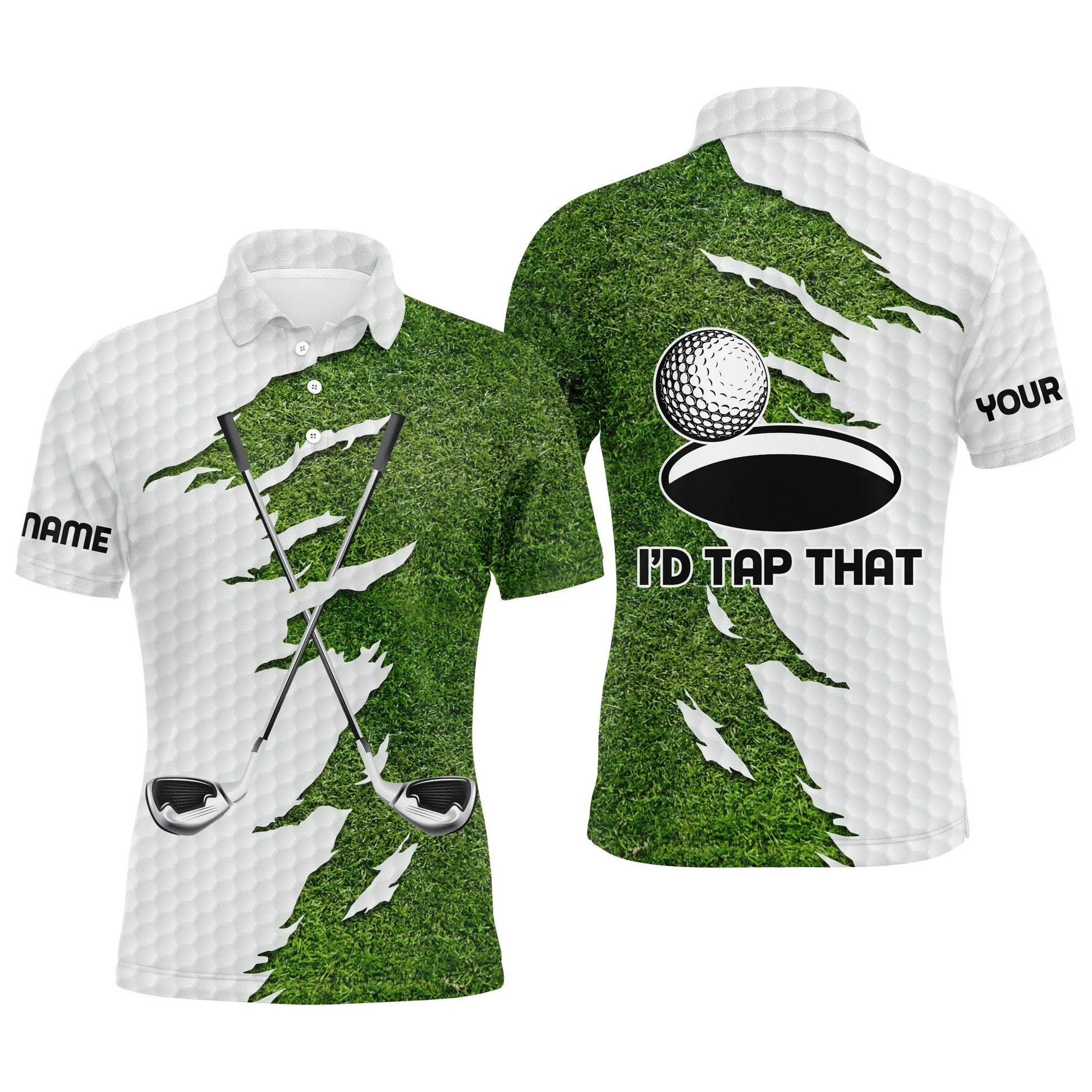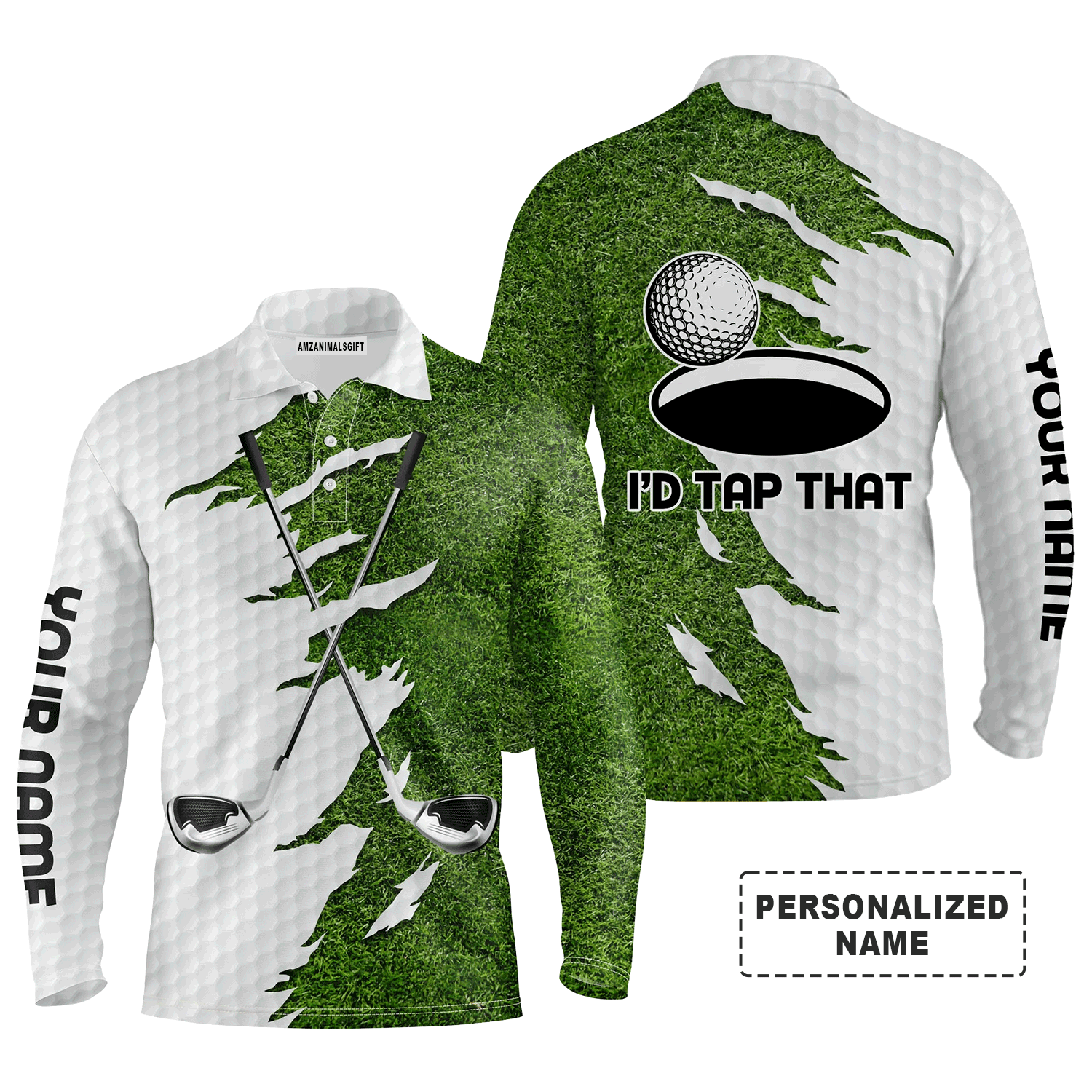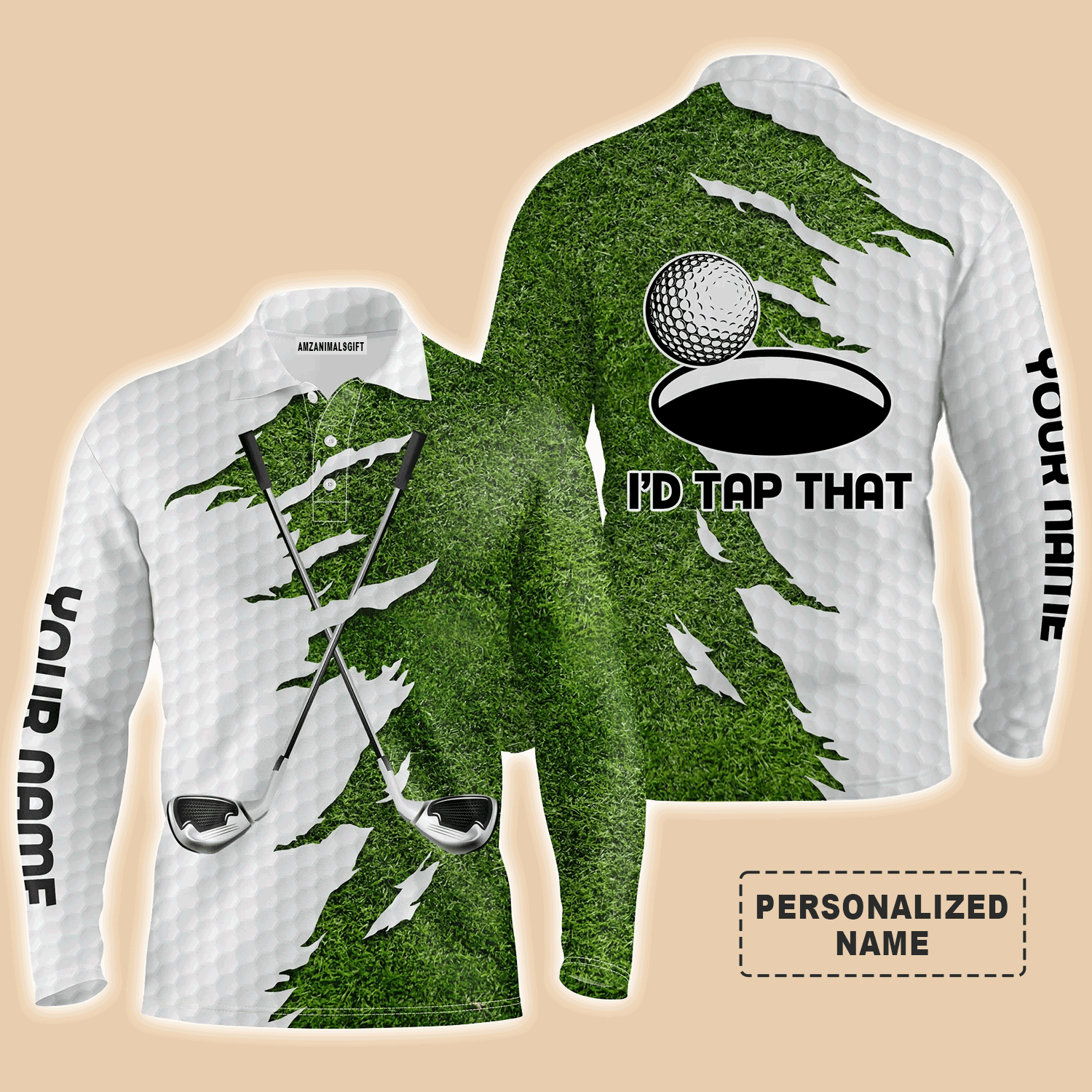 Custom Golf Long Sleeve Men Polo Shirt - Green Golf Course Custom Name , I'd Tap That Men Golf Polo Shirt - Personalized Gift For Golf Men, Golf Lover