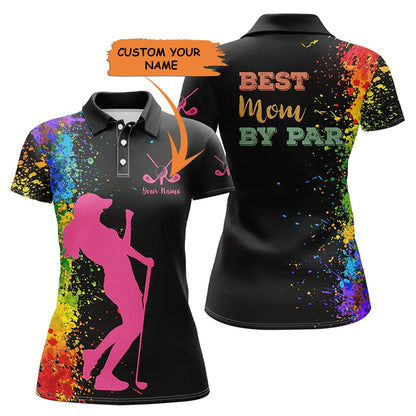 Custom Golf Women Polo Shirt - Women Golf Polo Shirt Custom Name Black Watercolor Best Mom By Par, Mother's Day Golf - Perfect Polo Shirt For Women