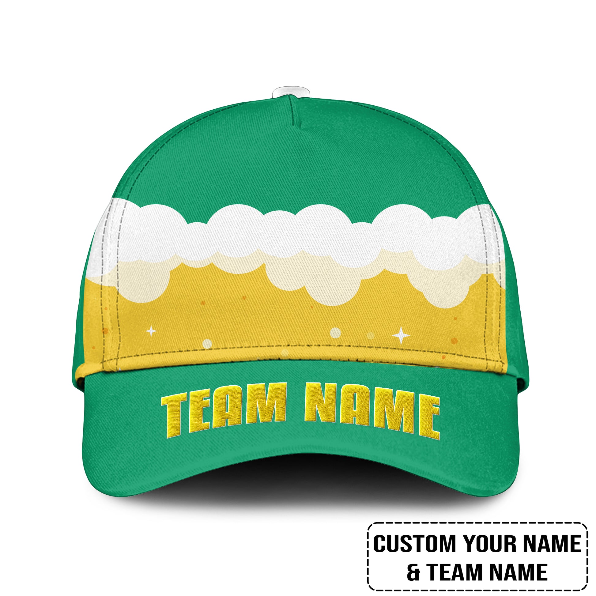 Custom Green White Yellow Beer Pattern Design Oktoberfest Beer Festival Performance Embroidered Cap