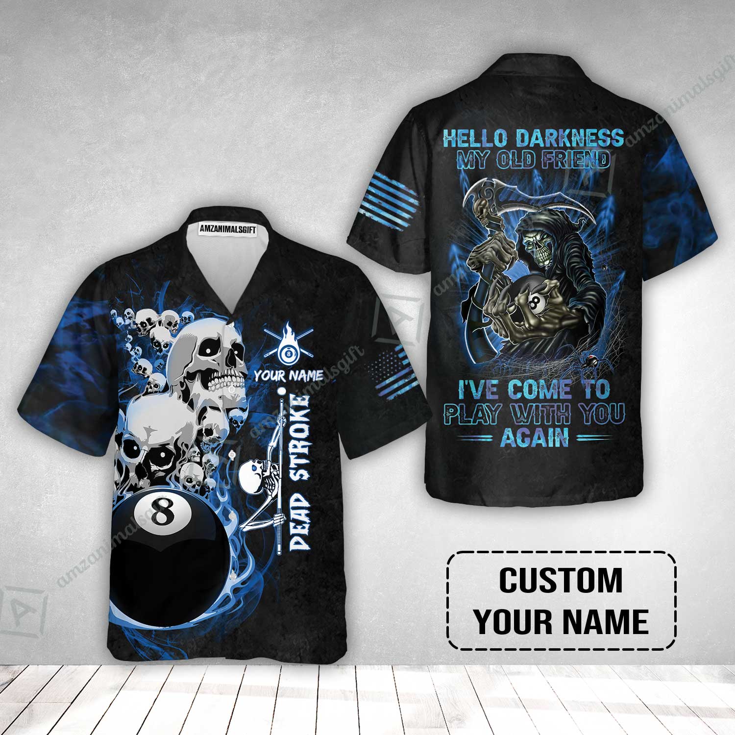 Custom Name Billiard Hawaiian Shirt, Personalized Blue Galaxy 8 Ball Pool Billiards, Hello Darkness My Old Friend Long Hawaiian Shirt For Billiards Lovers