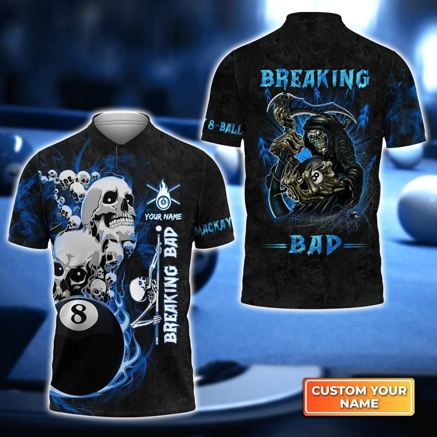 Custom Name Billiard Men Polo Shirt, Personalized Breaking Bad 8 Ball Pool Billiards Polo Shirts, Perfect Gift For Men, Billiard Lovers, Players