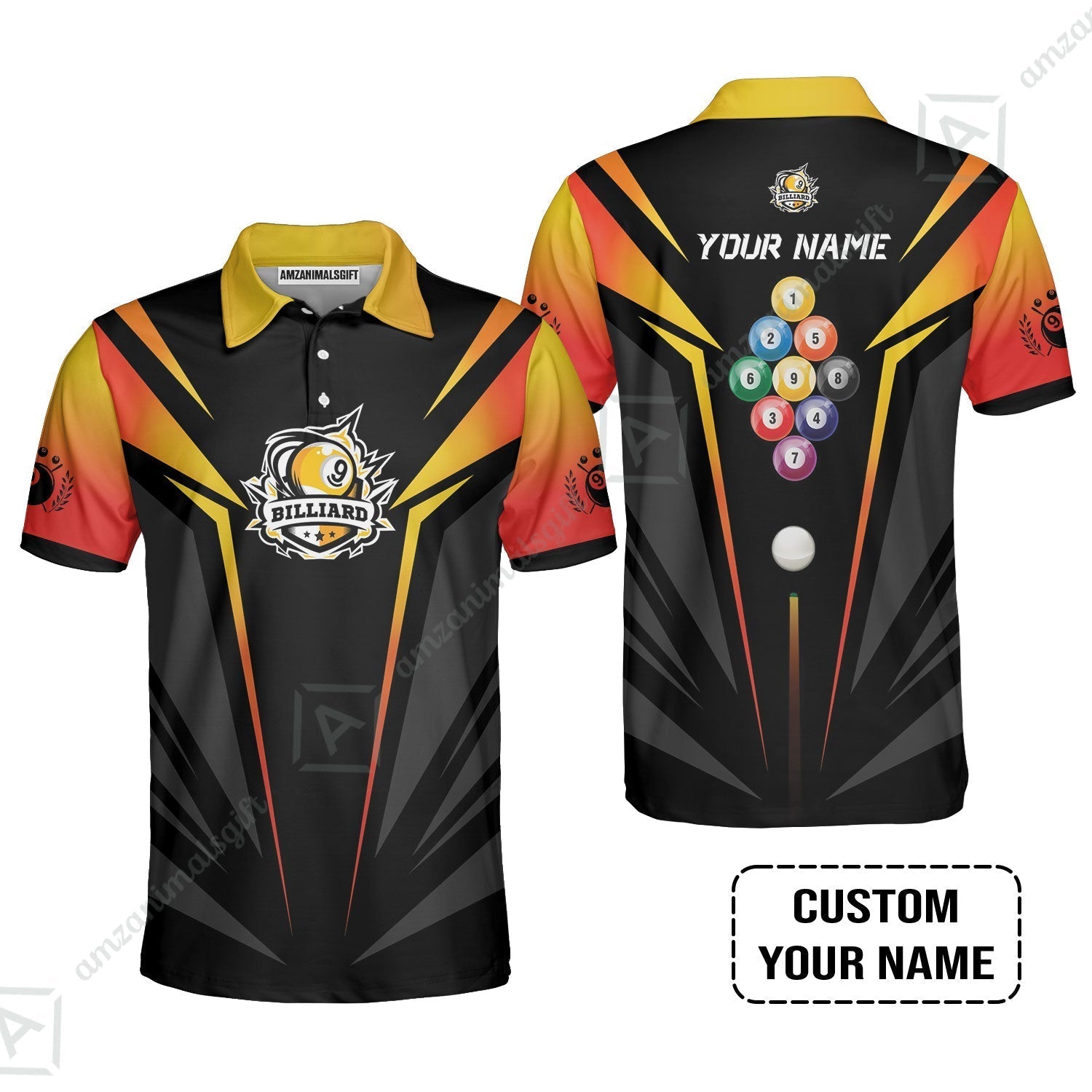 Custom Name Billiard Women Polo Shirt, Nine-Ball In Orange Personalized 8 Ball Pool Billiards Women Polo Shirt