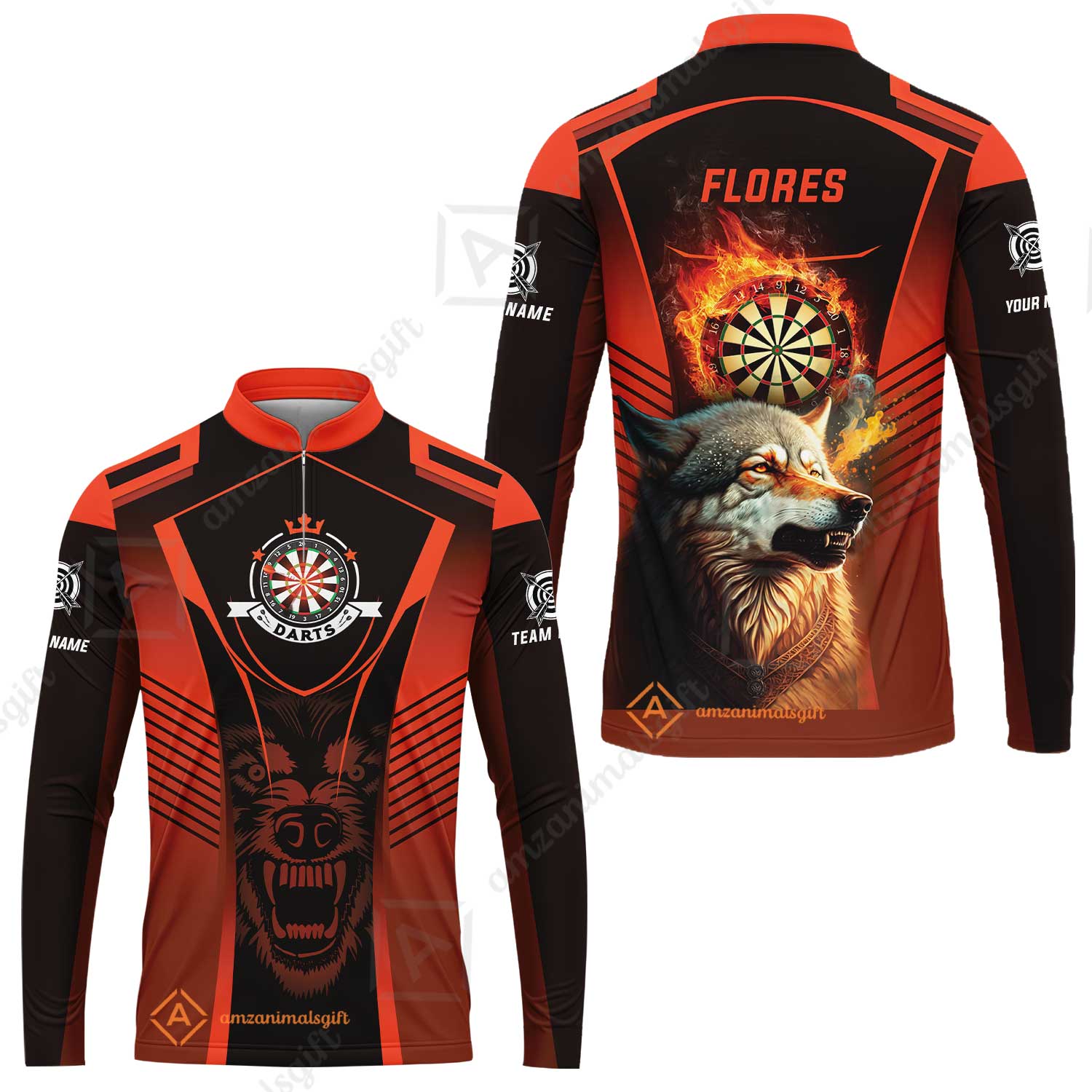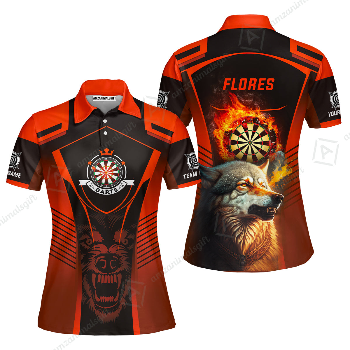 Custom Name Darts Men Polo Shirt, Orange Wolf Dartboard Personalized Polo Shirts, Gift For Men, Darts Lovers, Darts Players