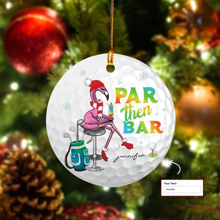 Custom Name Flamingo Golf Cocktail Par Then Bar Circle Ceramic Ornament, Christmas Golf Ceramic Ornament - Best Gift For Golf Lovers, New Year