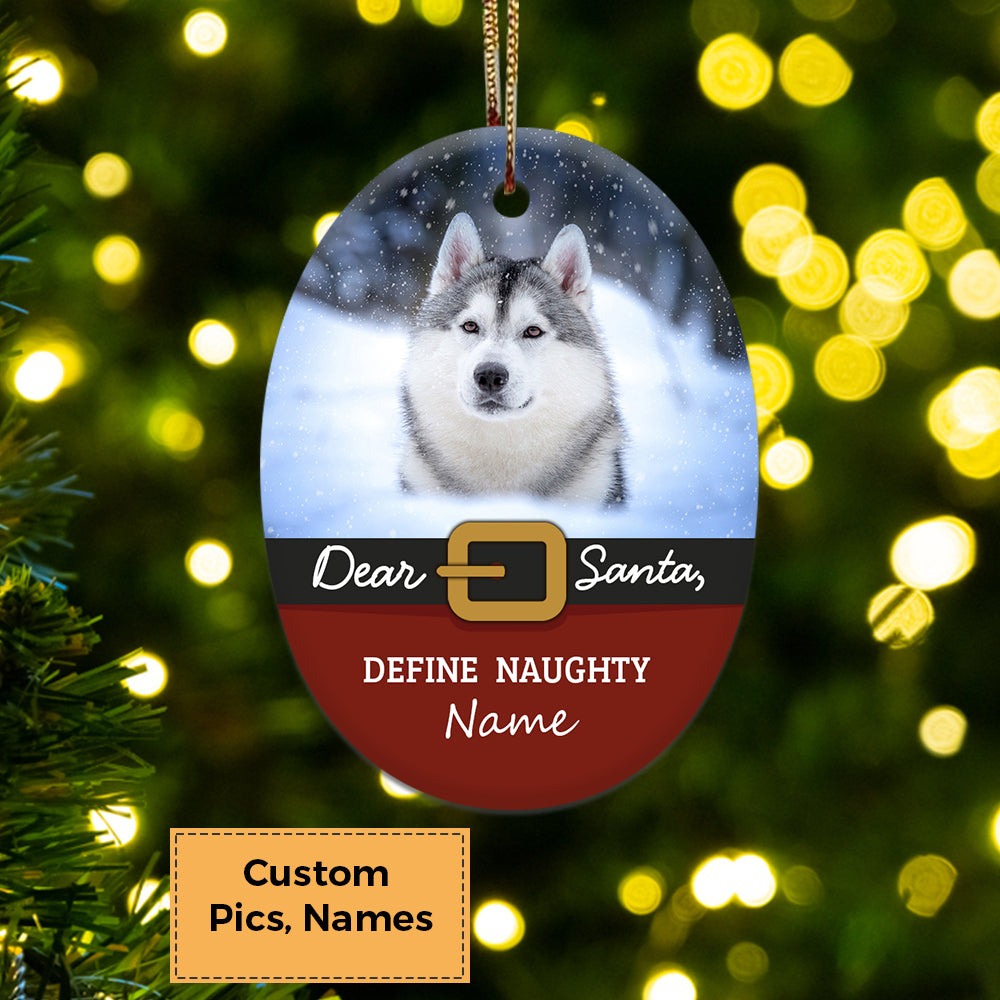 Custom Photo With Dog Ceramic Ornament, Custom Pet Photo Ceramic Ornament, Circle Ceramic Ornament, Oval Ceramic Ornament, Star Ceramic Ornament, Heart Ceramic Ornament Custom Photo With Dog, Dear Santa Define Naughty Custom Photo Ornament - Christmas Ornament Gift For Dog Lovers, Cat Lovers, Pet Lovers, Pet Owners.