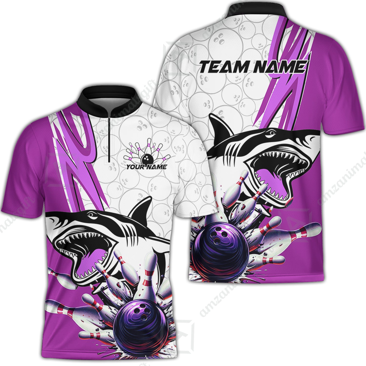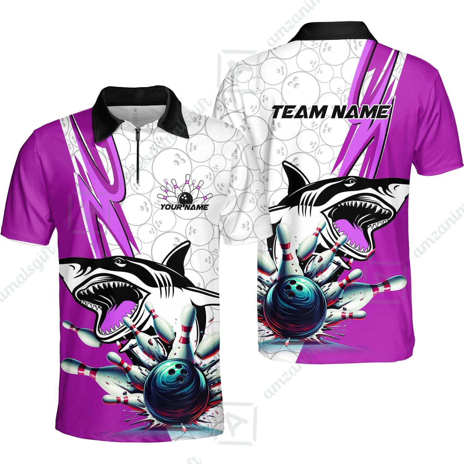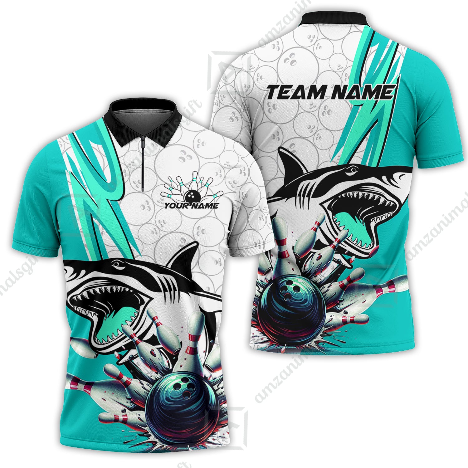 Custom Shark Bowling Team Jersey, Shark Bowling Jersey Multicolor Polo Quarter-Zip Shirts, Bowling Uniforms Jerseys, Custom Name And Team Name