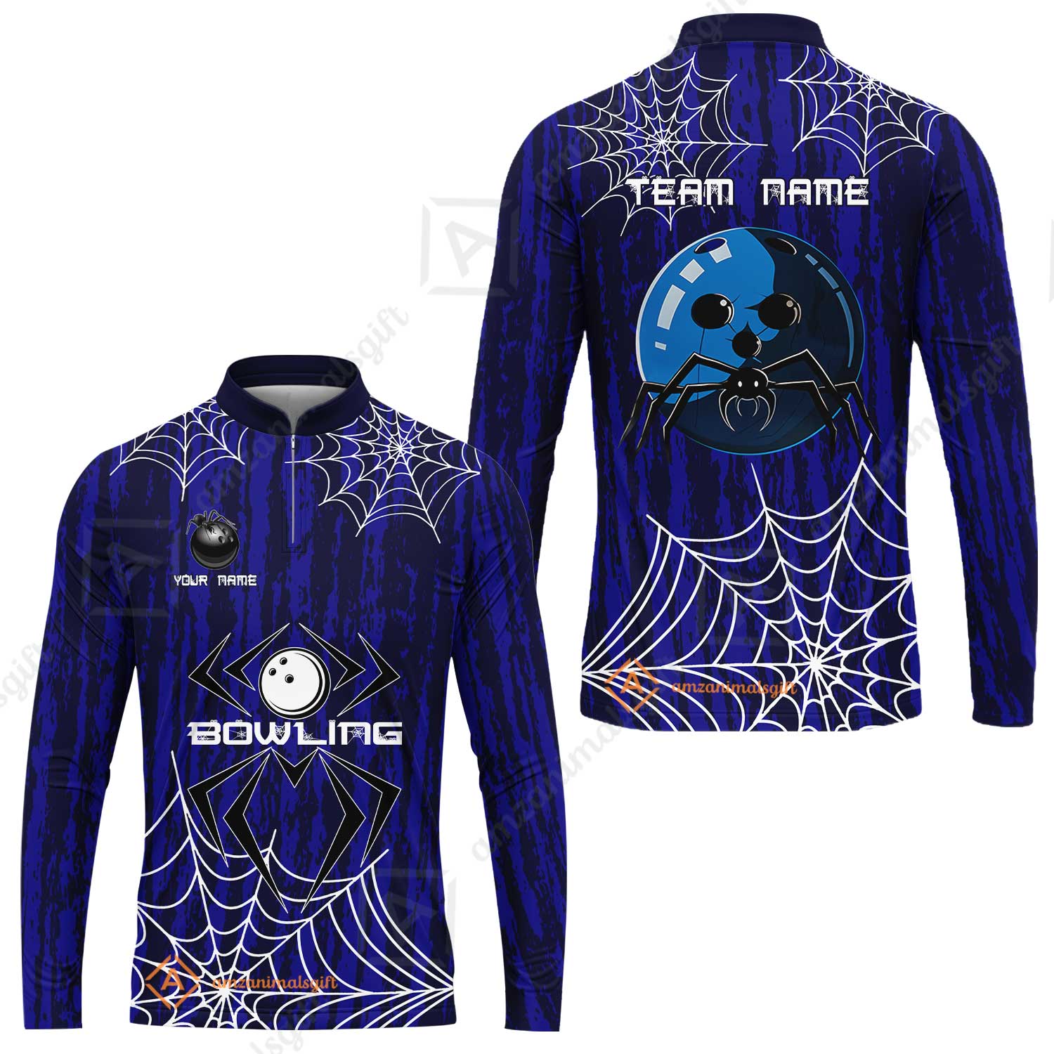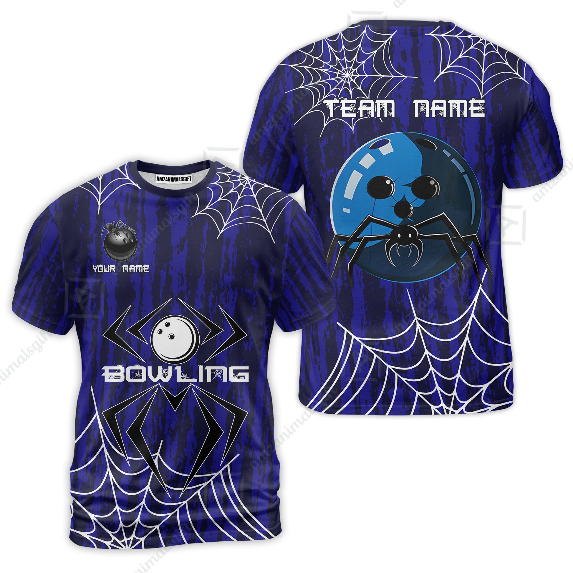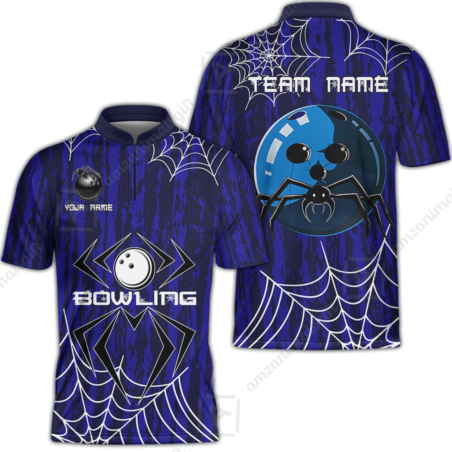 Custom Spider Blue Camo Bowling Team Jersey Polo Shirts, Halloween Bowling Team Uniforms Jerseys, Personalized Name And Team Name