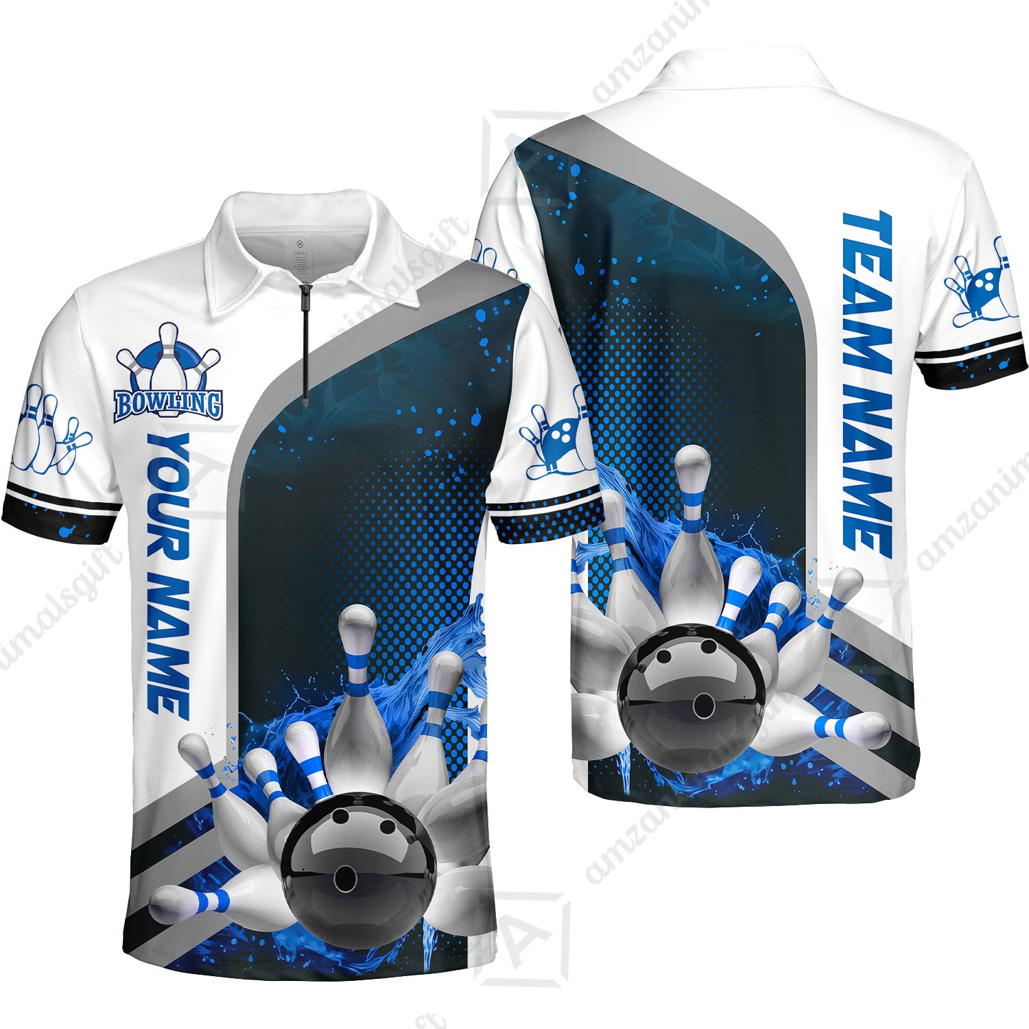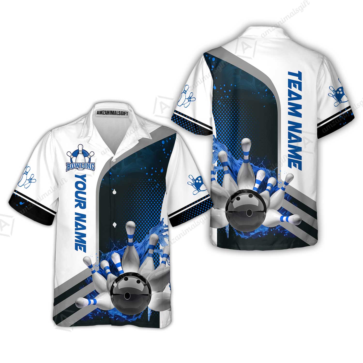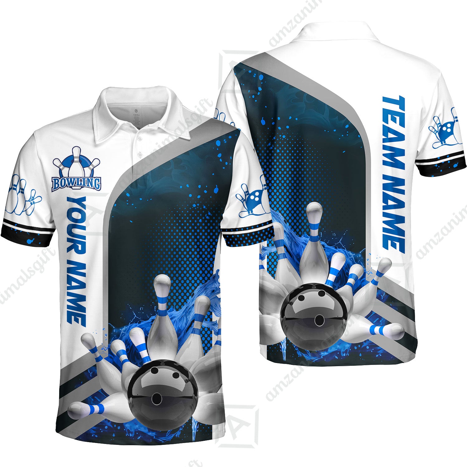 Custom Team Name Bowling Team Jersey - Custom Name Bowling Ball And Pins Water Personalized Bowling Polo Shirt - Uniform Shirt For Bowlers