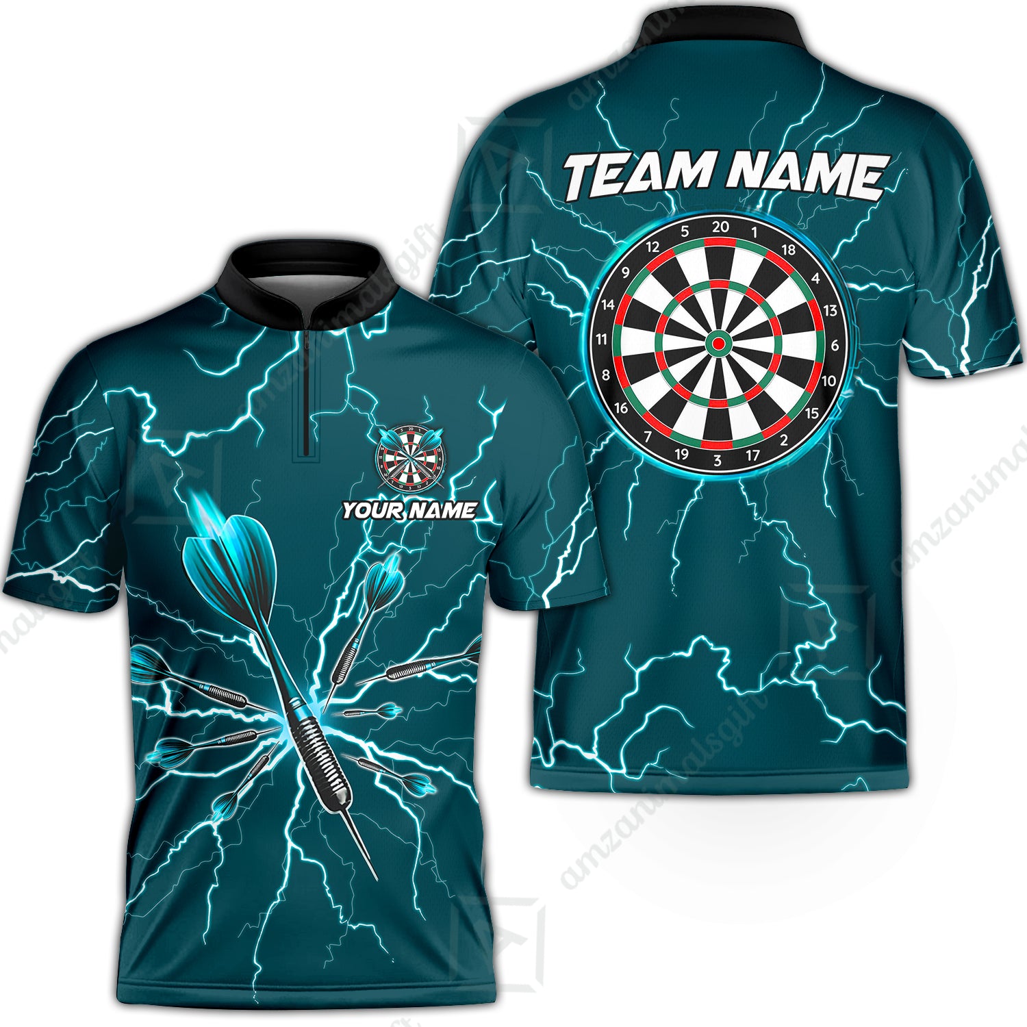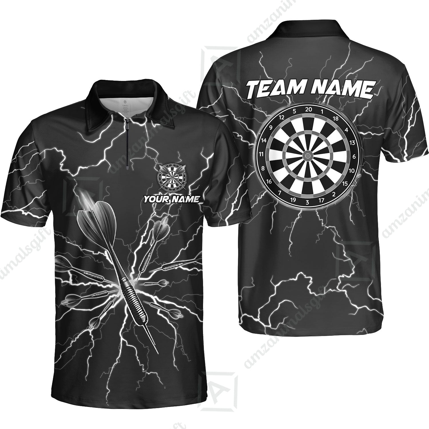 Custom Thunder Lightning Darts Quarter Men Polo Team Shirts, Custom Darts Team Jerseys Uniform, Personalized Name And Team Name
