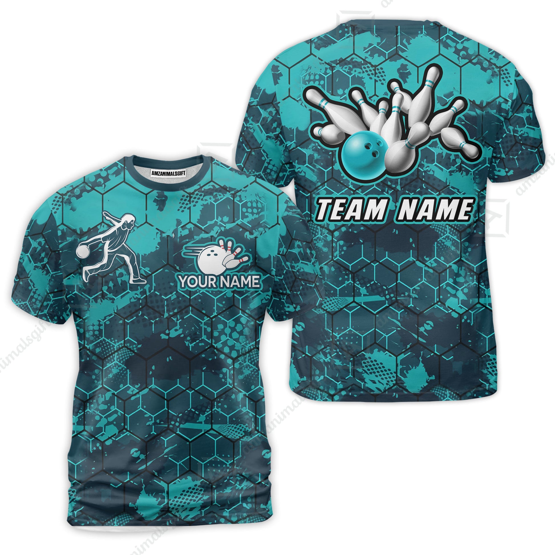 Custom Turquoise Bowling Team Jersey Shirts, Bowling Team Uniforms Jerseys, Personalized Name And Team Name