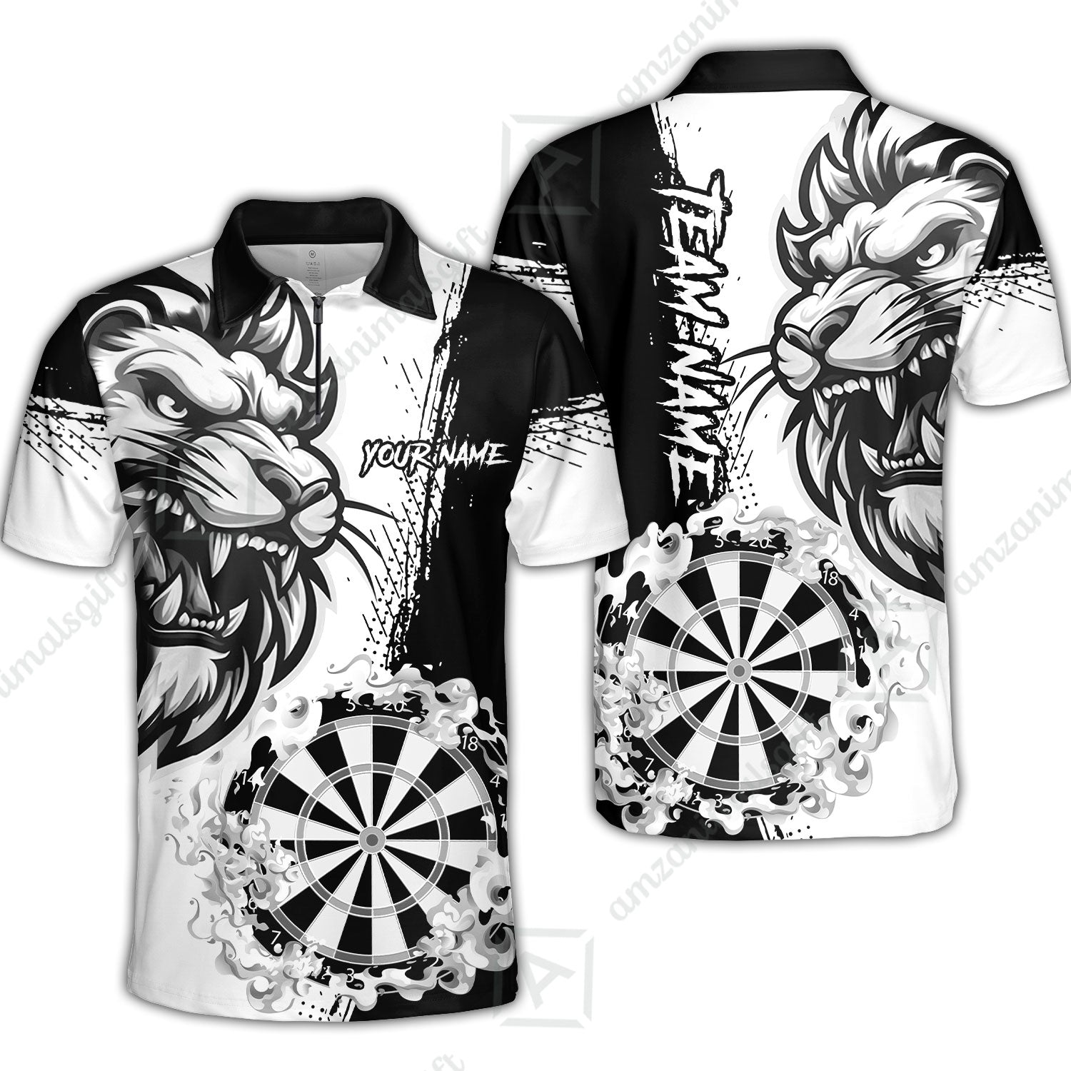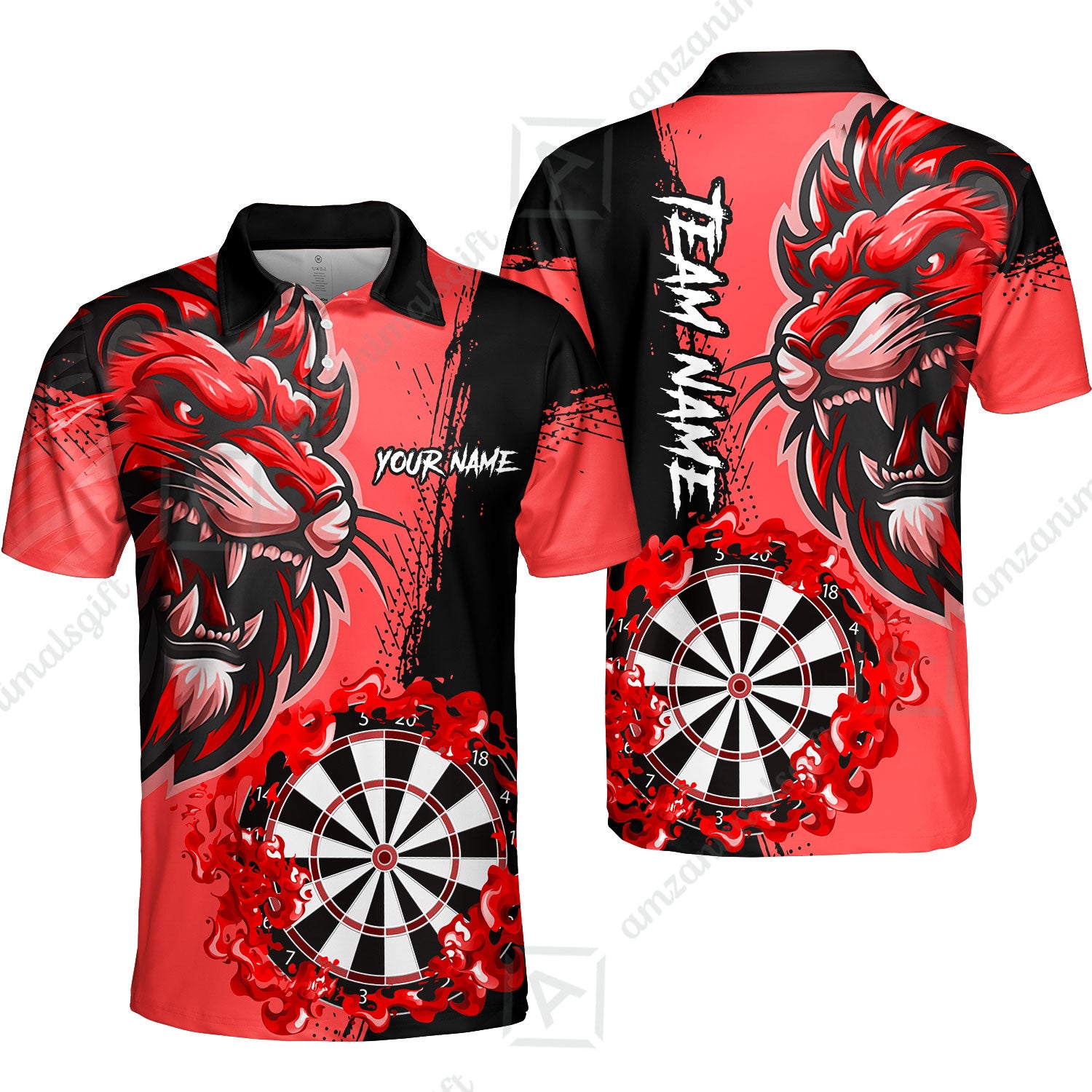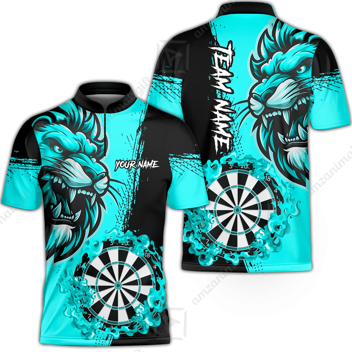 Custom Turquoise Funny Darts Team Unisex Polo Shirts, Darts uniforms Flame Lion Pattern Personalized Name And Team Name