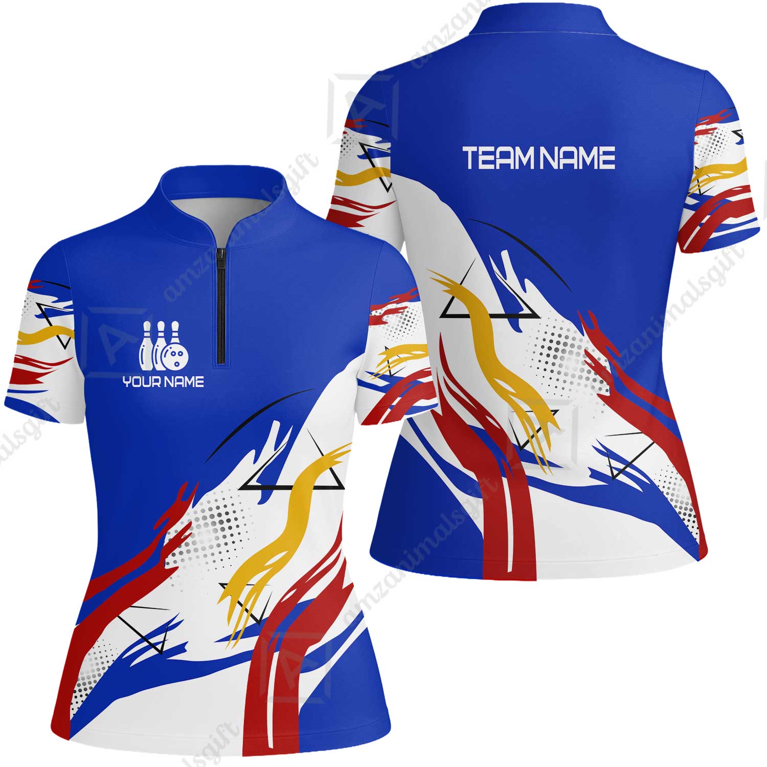 Customize Name, Team Name Bowling Jersey, Bowling Team Jersey Multicolor Polo Quarter-Zip Shirts, Custom Bowling Uniforms Jerseys