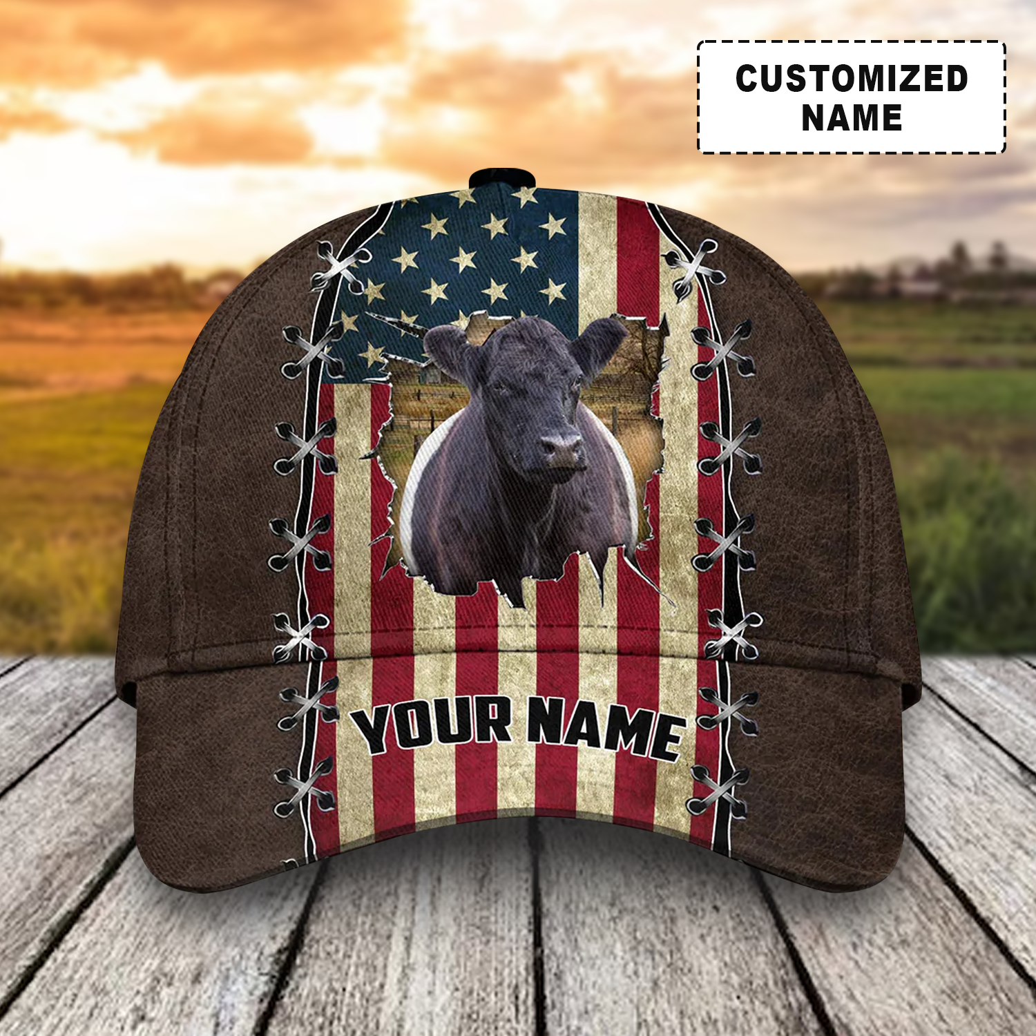 Customized Belted Galloway Cattle Caps Hat, Belted Galloway And American Flag Hats, Farm Hat For Men Women July 4th