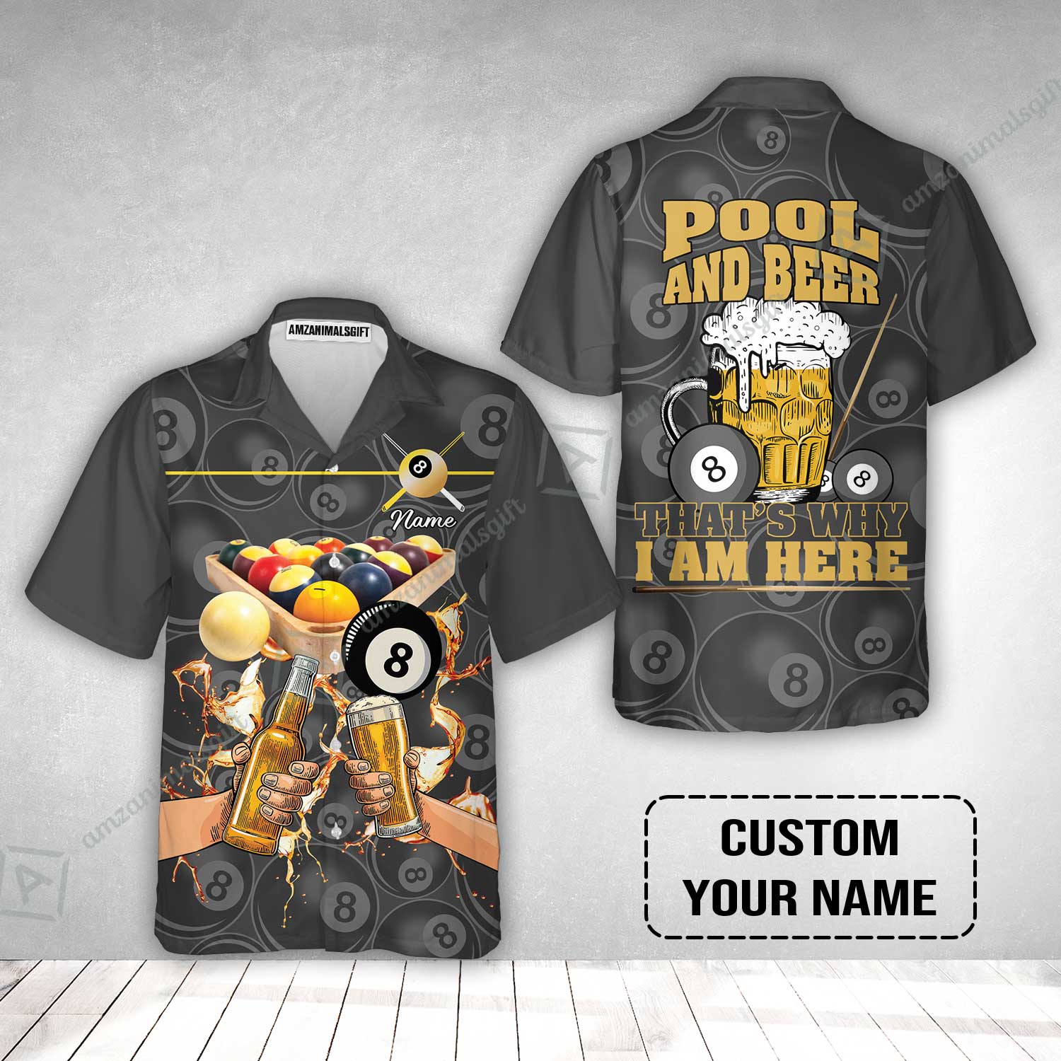 Customized Billiard Hawaiian Shirt, Personalized Billiard Pool And Beer That's Why I am Here Hawaiian Shirt