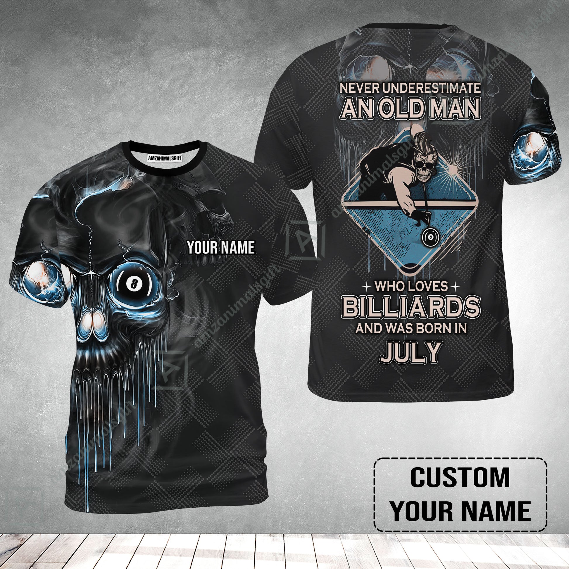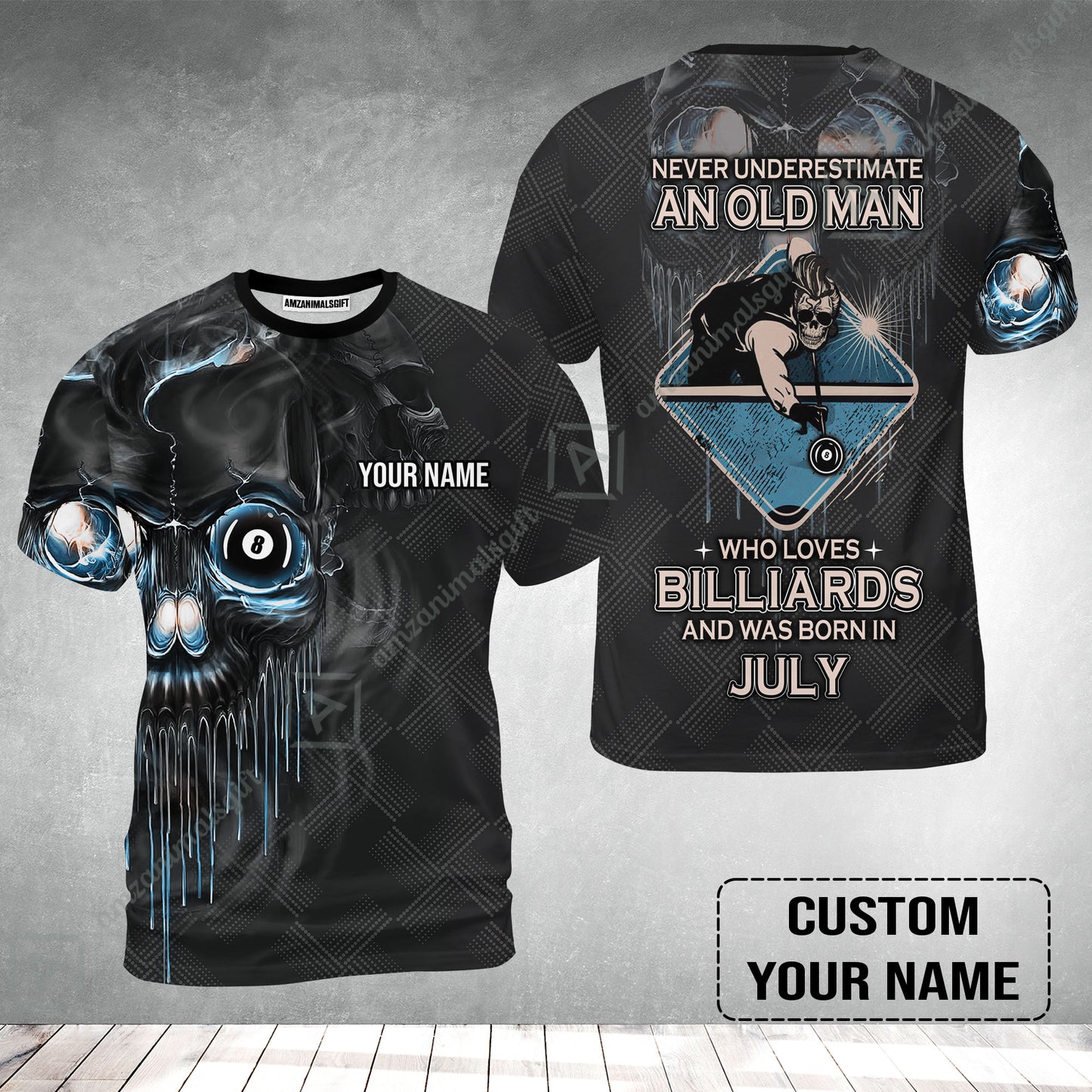 Customized Billiard T-Shirt - Pool 8 Ball Never Underestimate An Old Man And Was Born In July Personalized T-Shirt