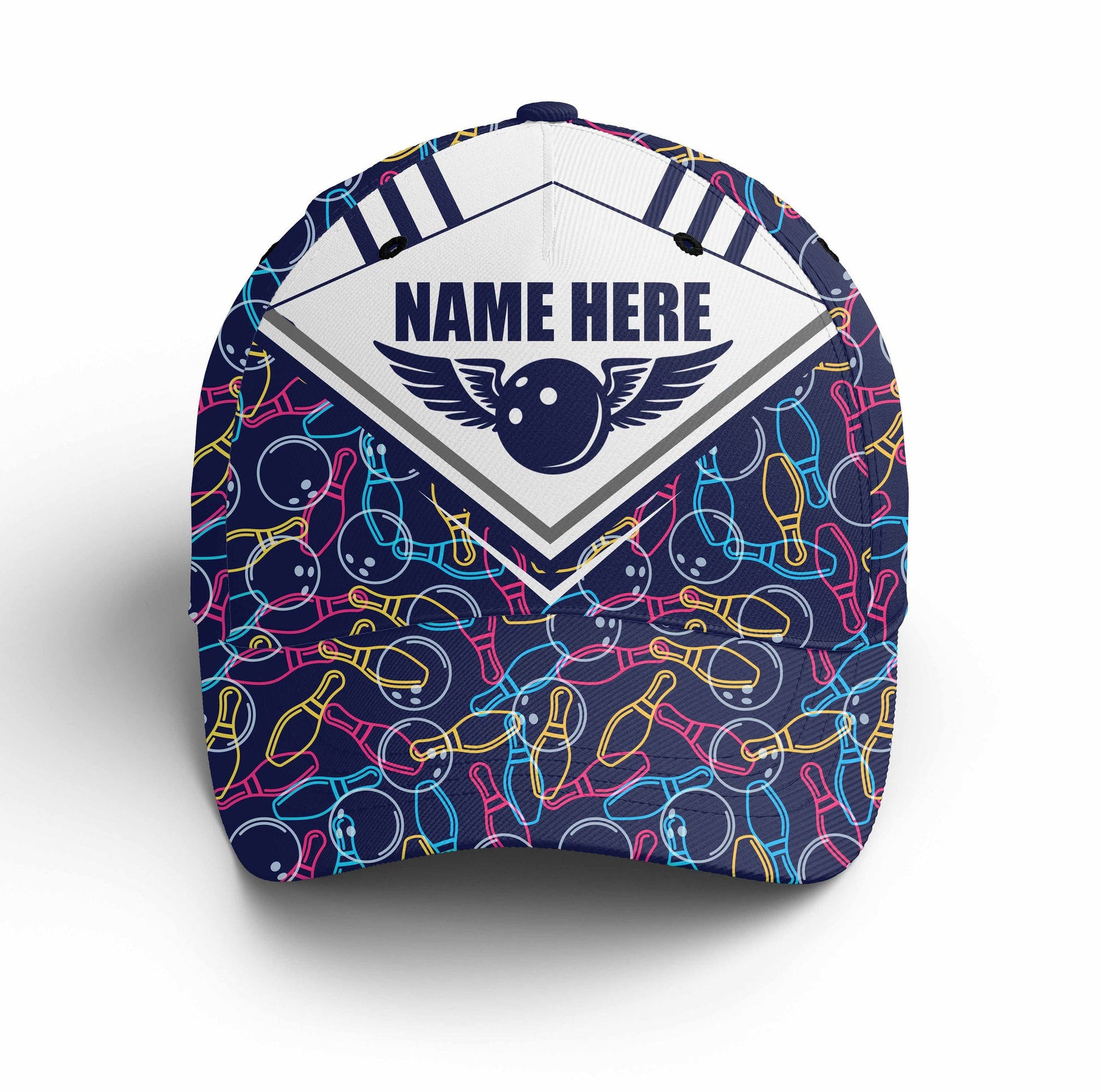 Customized Bowling Classic Cap, Colorful Pins & Ball Pattern Bowling Hat For Men Women, Bowlers, Team League, Bowling Lover