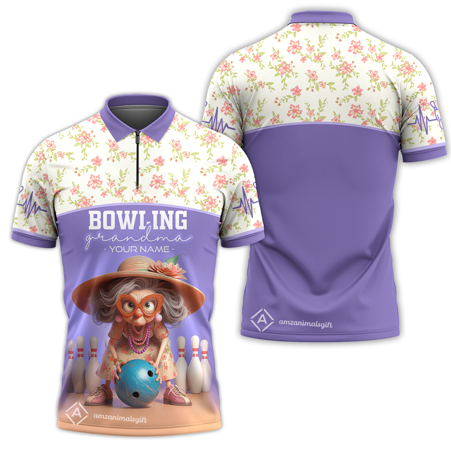 Customized Bowling Grandma Quarter-Zip Polo Shirt, Bowling Grandma Purple Style Personalized Name Shirt For Grandmother