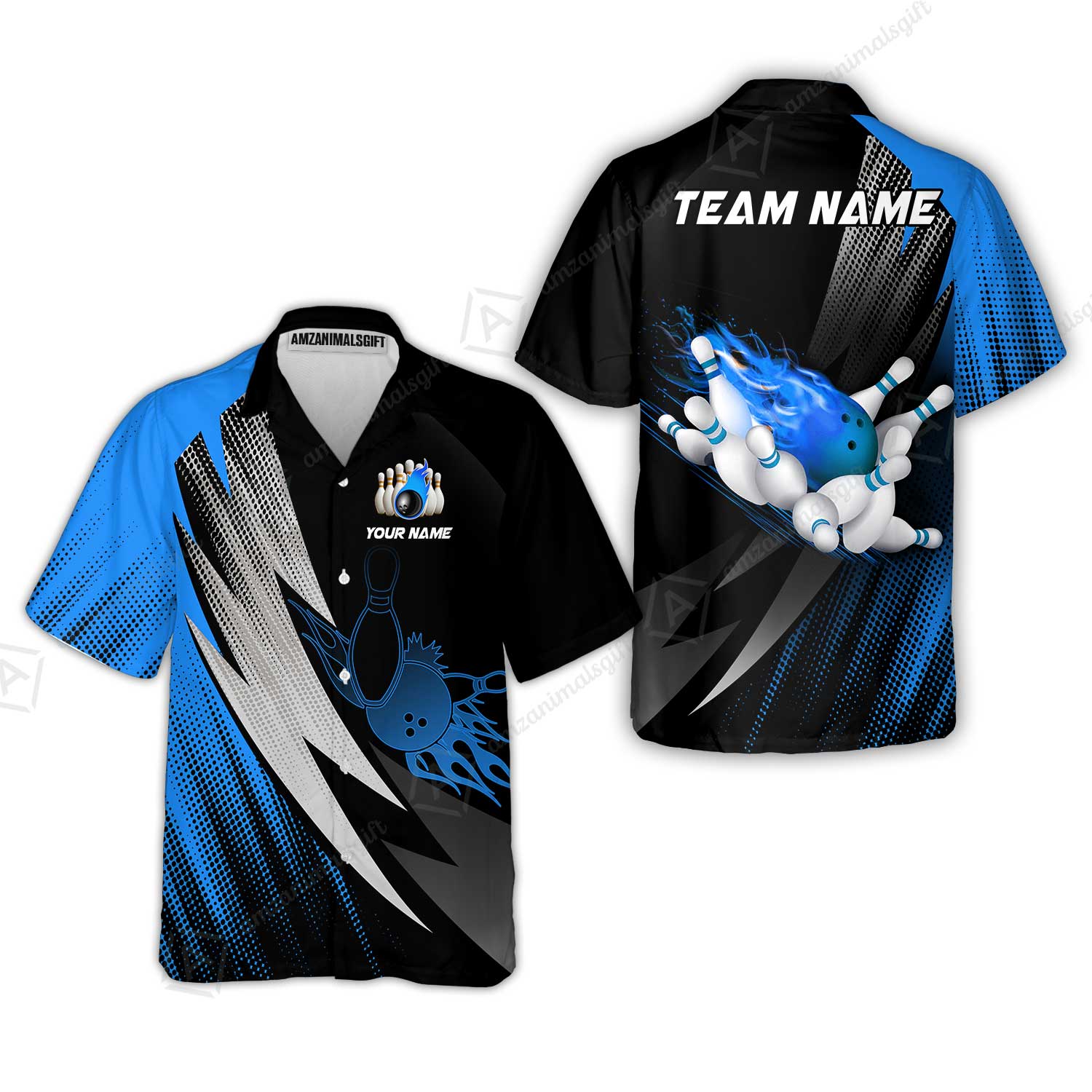 Customized Bowling Hawaiian Shirt, Bowling Ball And Pins Thunder Polka Dot Motifs Multicolor Option Customized Name And Team Polo Shirts