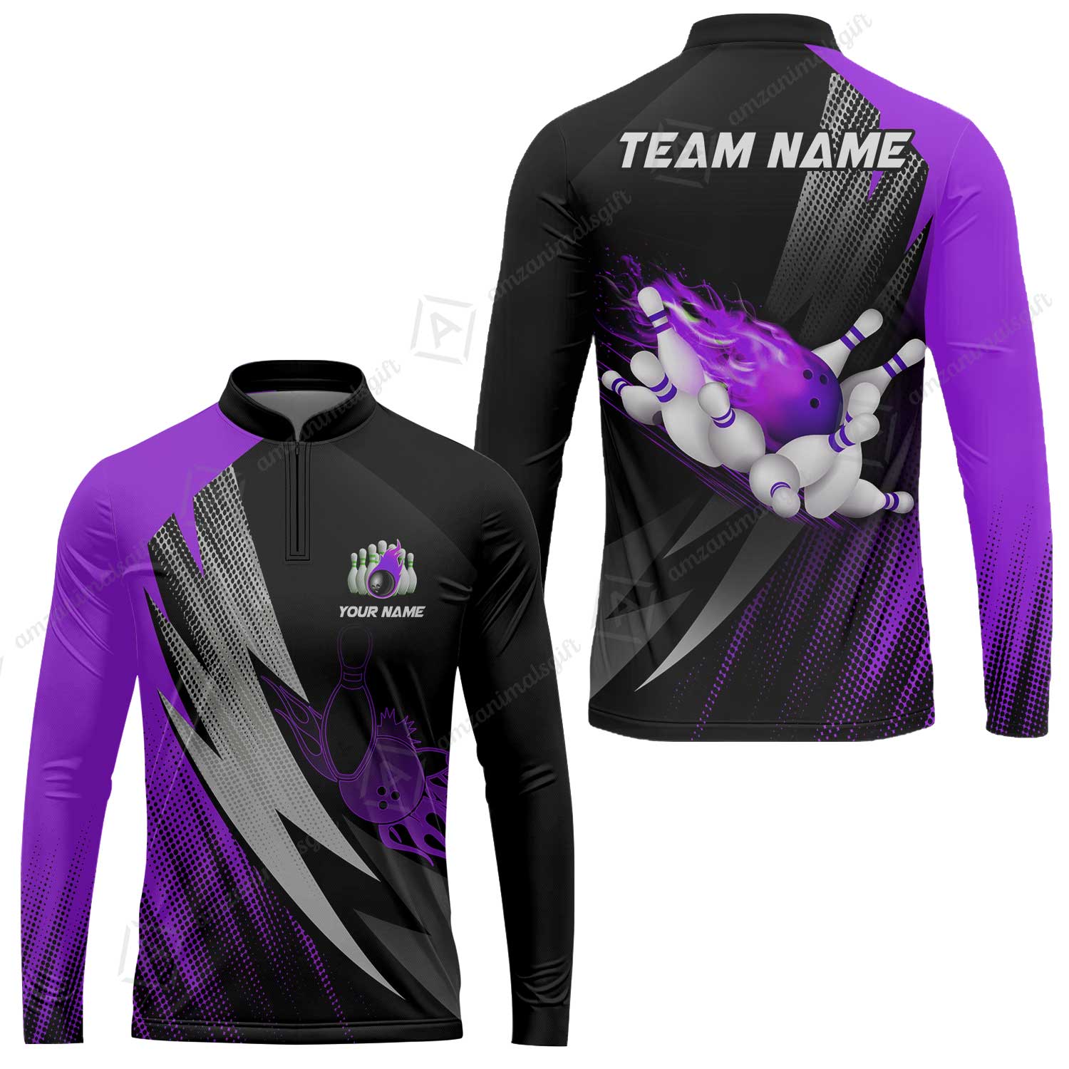 Customized Bowling Long Sleeve Jersey, Bowling Ball And Pins Thunder Polka Dot Motifs Multicolor Option Customized Name And Team Polo Shirts