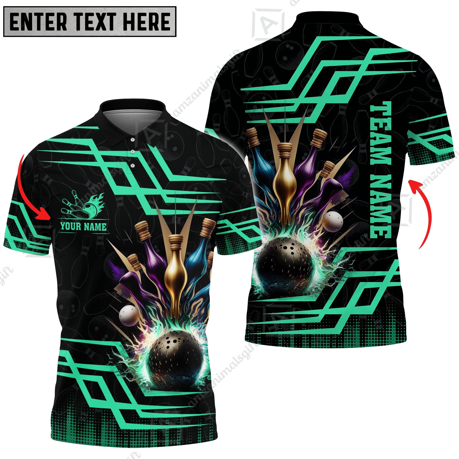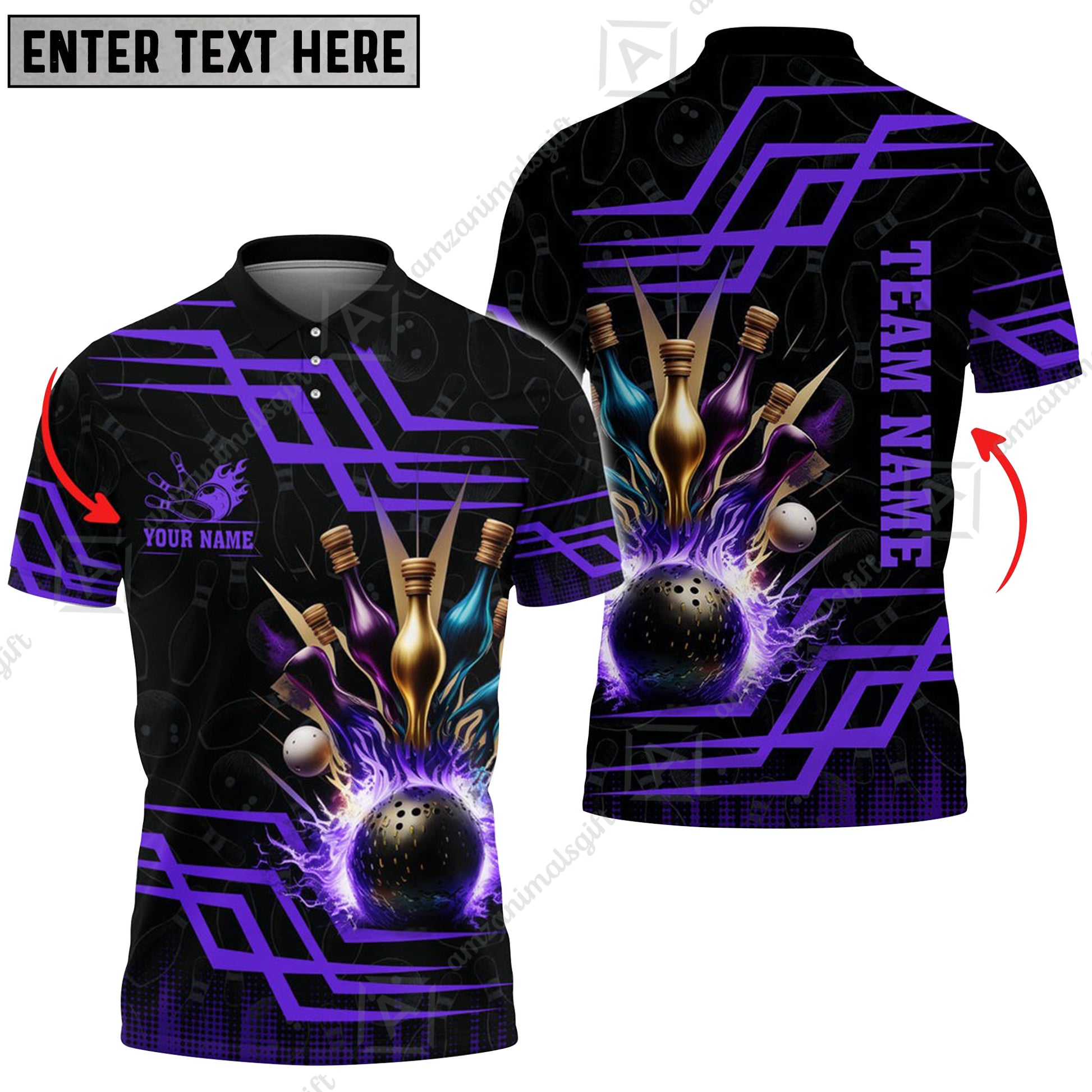 Customized Bowling Unisex Polo, Bowling And Pins Royal Multicolor Option Customized Name And Team Name For Bowling Team