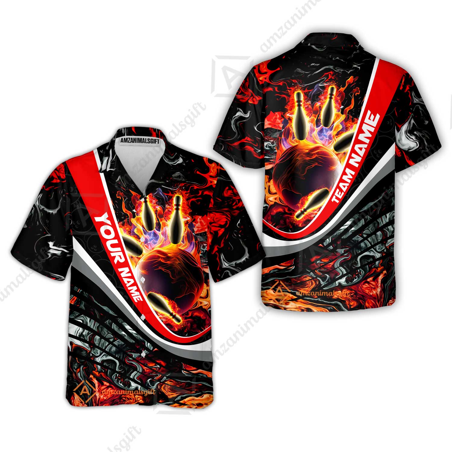 Customized Bowling Polo, Flaming Magma Bowling And Pins Multicolor Option Customized Name Team Name For Bowling Team Shirts