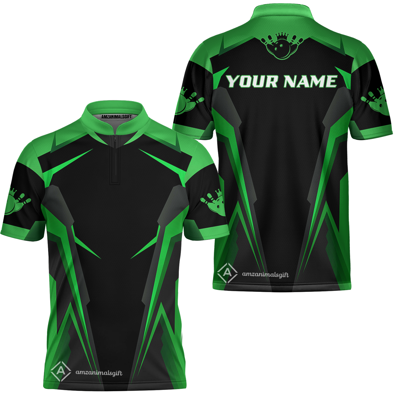 Customized Bowling Polo Shirt, Black And Green Bowling Polo Shirt, Perfect Outfit For Bowlers