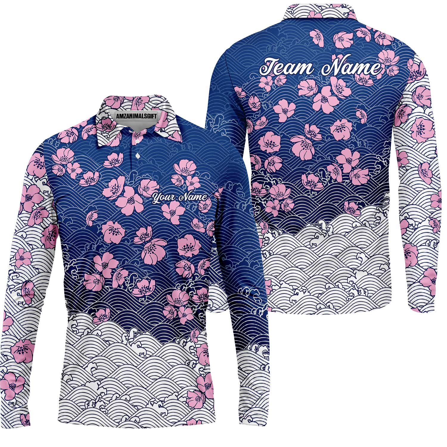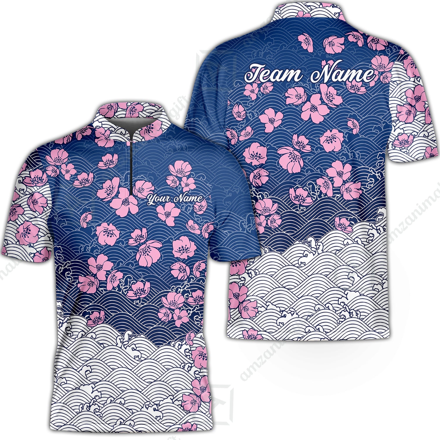 Customized Bowling Quarter-Zip Jersey Polo Shirts, Flowers Cherry Blossom Bowling Shirt For Tournament Team Men Women Bowlers