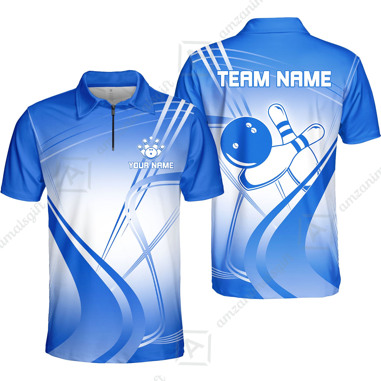 Customized Bowling Quarter-Zip Polo Shirt, Custom Bowling Zip Polo Uniform, Multicolor Team Style Jersey for Bowlers
