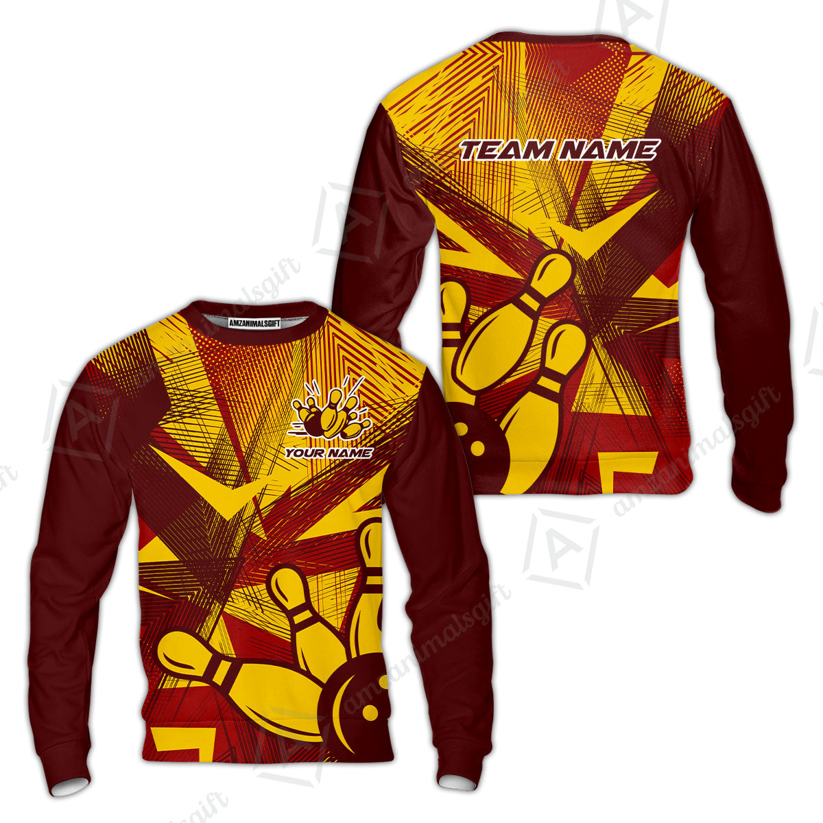 Customized Bowling Sweatshirt, Bowling Ball And Pins Esports Pattern Sweatshirt Uniform For Bowlers
