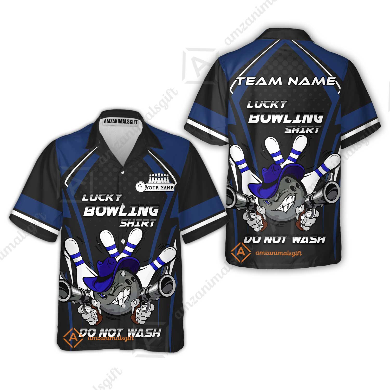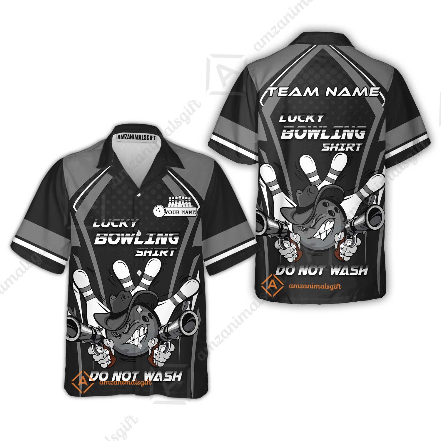 Customized Bowling Team Hawaiian Shirt, Lucky Bowling Shirt Do Not Wash Bowling Ball Aiming Guns, Personalized Name Bowling Shirt