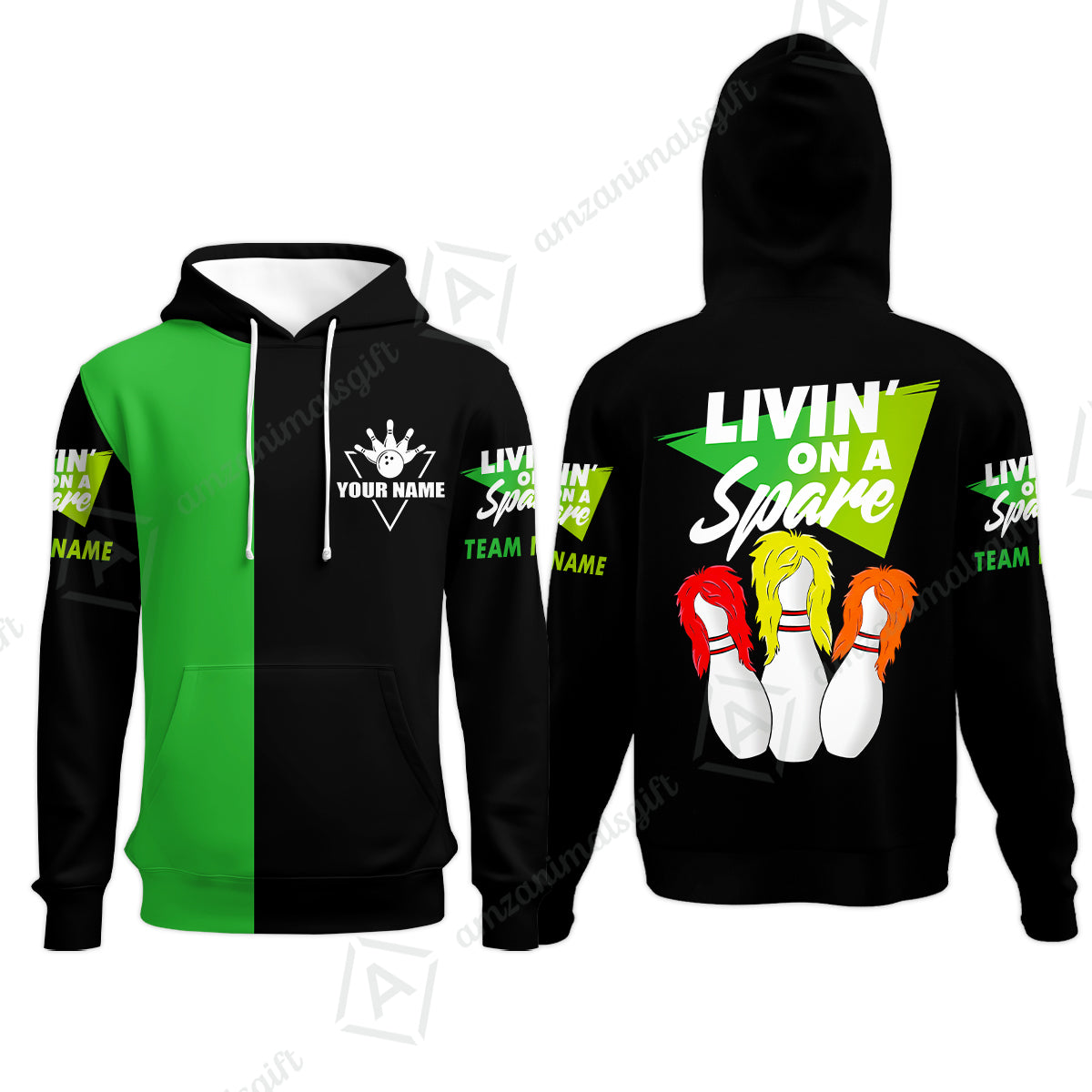 Customized Bowling Team Hoodie, Bowling Livin' On A Spare Personalized Hoodie Uniform For Bowlers