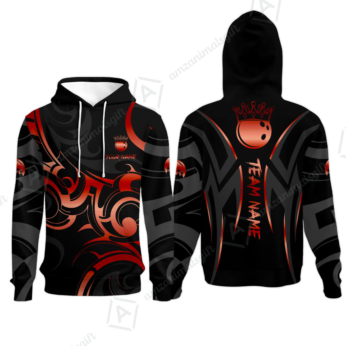 Customized Bowling Team Hoodie, Bowling Swirling Fire Flames Gold And Black Style Polo Shirt For Bowlers