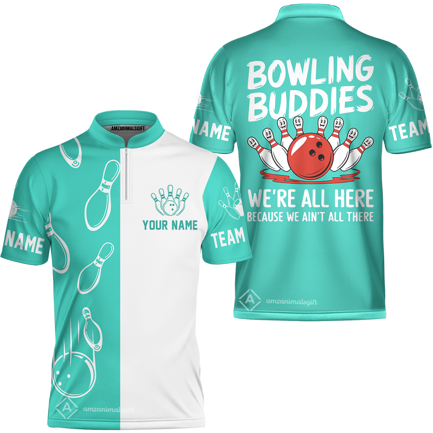 Customized Bowling Team Jersey, Bowling Buddies We're All Here Because We Ain't All There Personalized Name Quarter-Zip Jersey