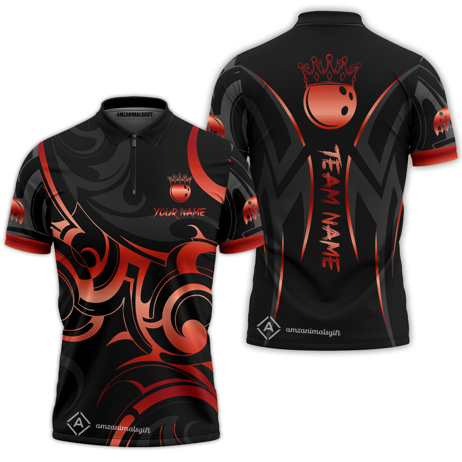 Customized Bowling Team Quarter-Zip Polo Shirt, Bowling Swirling Fire Flames Gold And Black Style Zip Polo Shirt