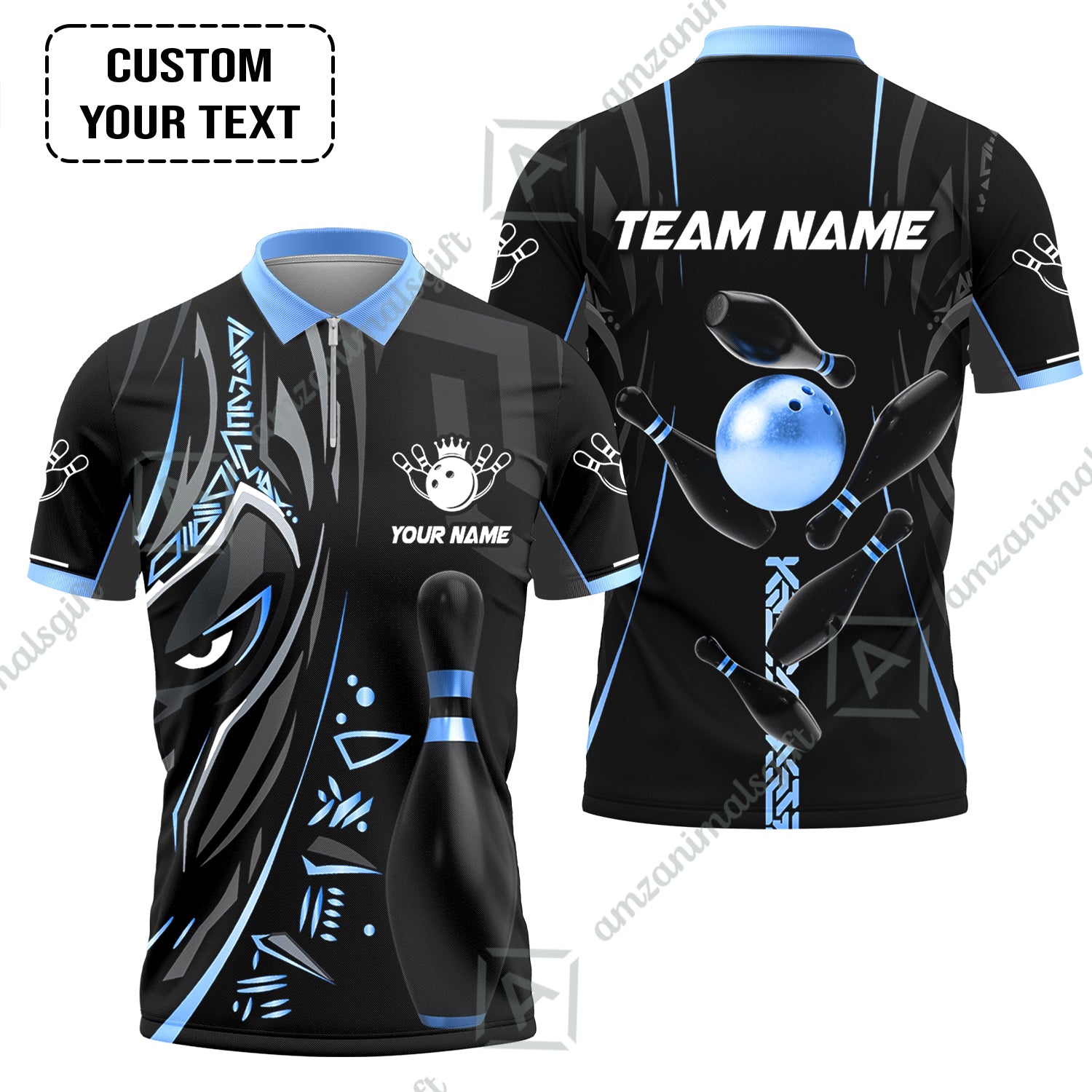 Customized Bowling Team Quarter-Zip Polo Shirts Bowling Ball & Pins Black Panther, Personalized Name Multicolor Shirt For Bowlers