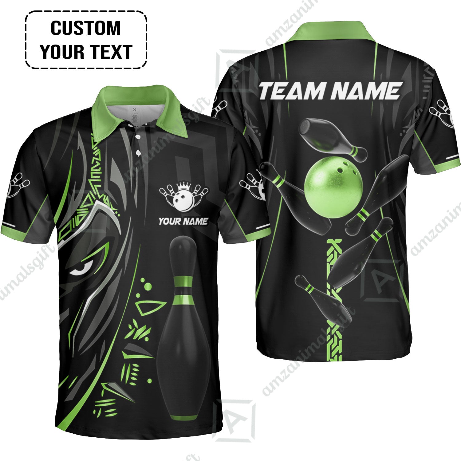 Customized Bowling Team Unisex Polo Shirts Bowling Ball & Pins Black Panther, Personalized Name Multicolor Shirt For Bowlers