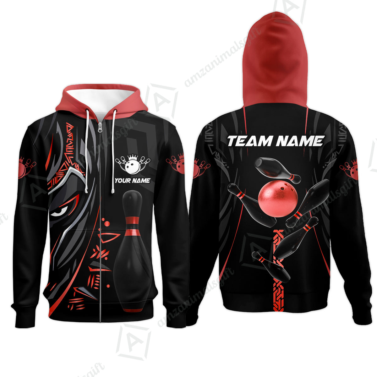 Customized Bowling Team Zip Hoodie Bowling Ball & Pins Black Panther, Personalized Name Multicolor Shirt For Bowlers