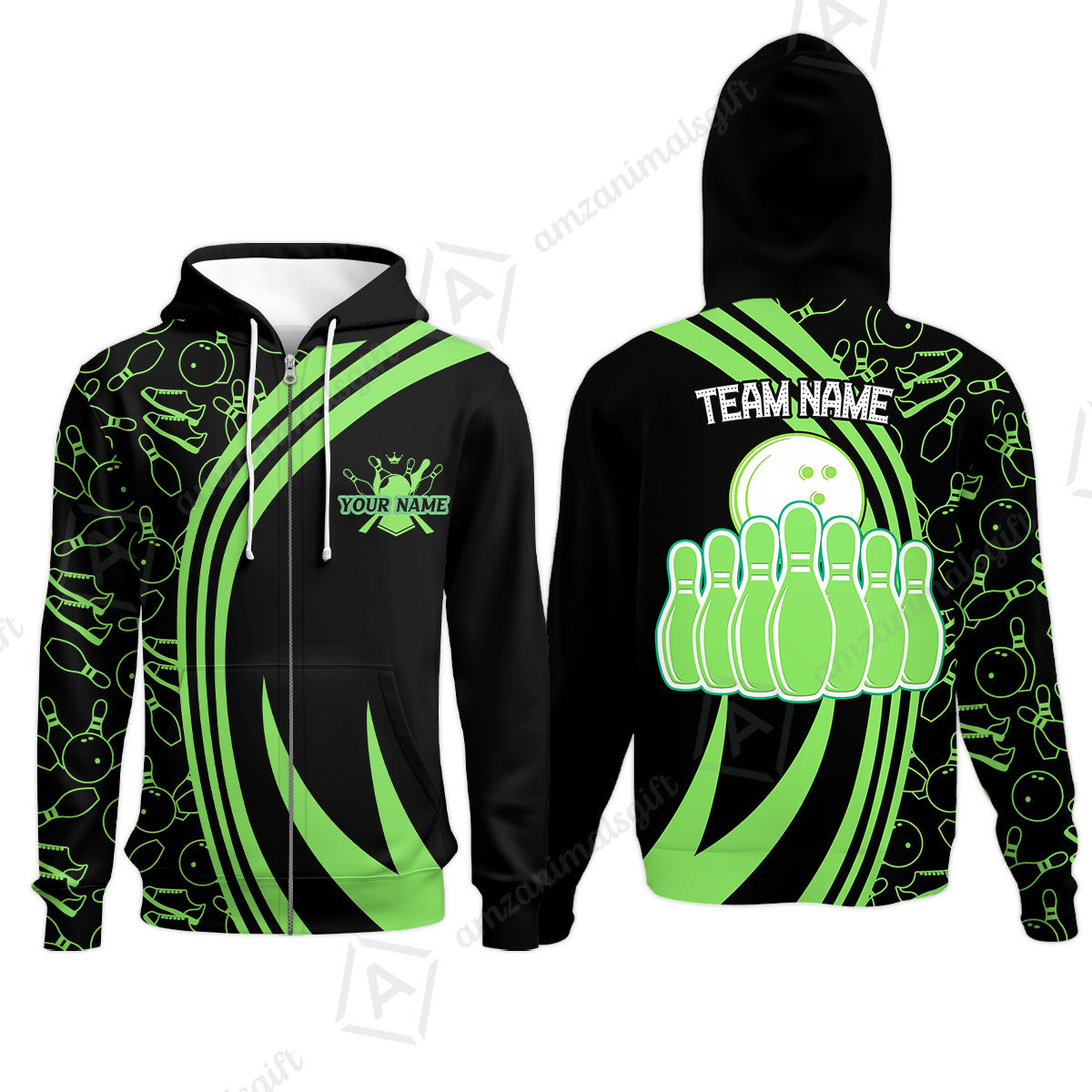 Customized Bowling Team Zip Hoodie Neon Multicolor Bowling Uniforms With Name And Team Name For Bowlers, Team League