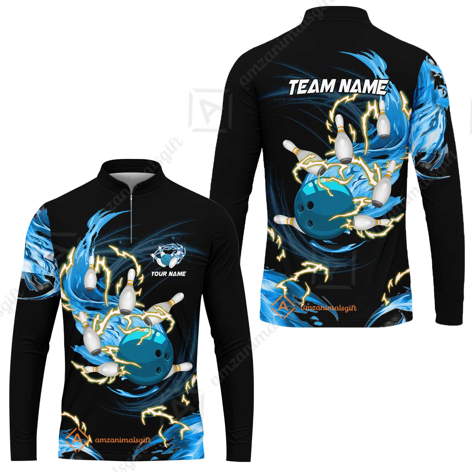 Customized Bowling Thunder Flame Long Sleeve Jersey, Bowling Ball & Pins Breath Of Thunder Flame Multicolor Option, Perfect Outfit For Bowlers