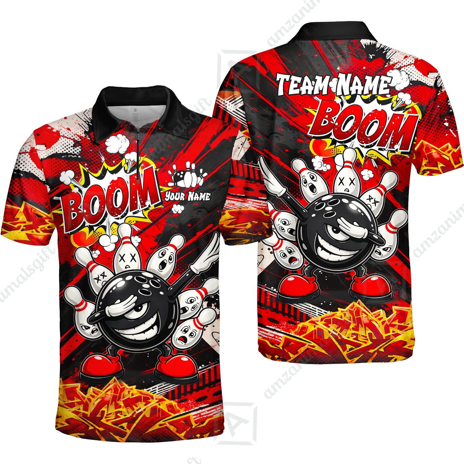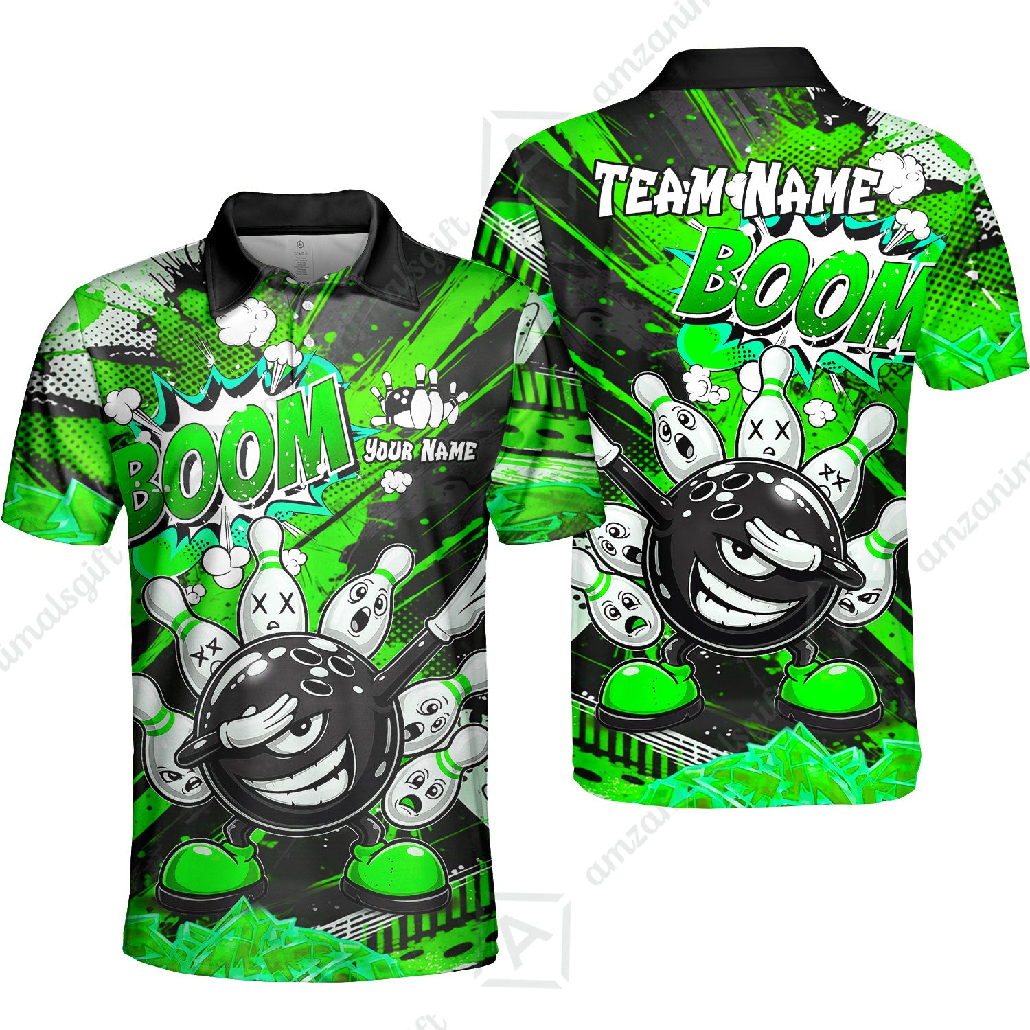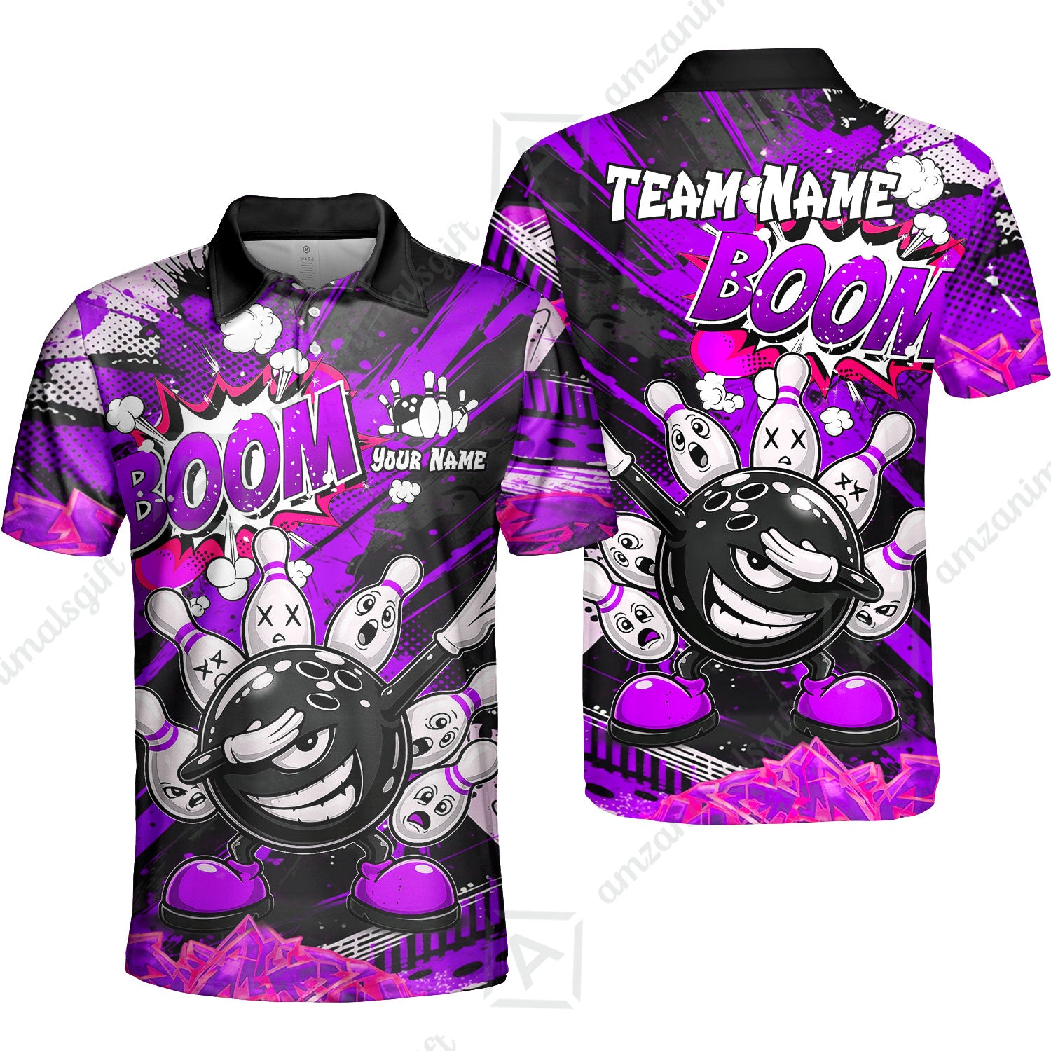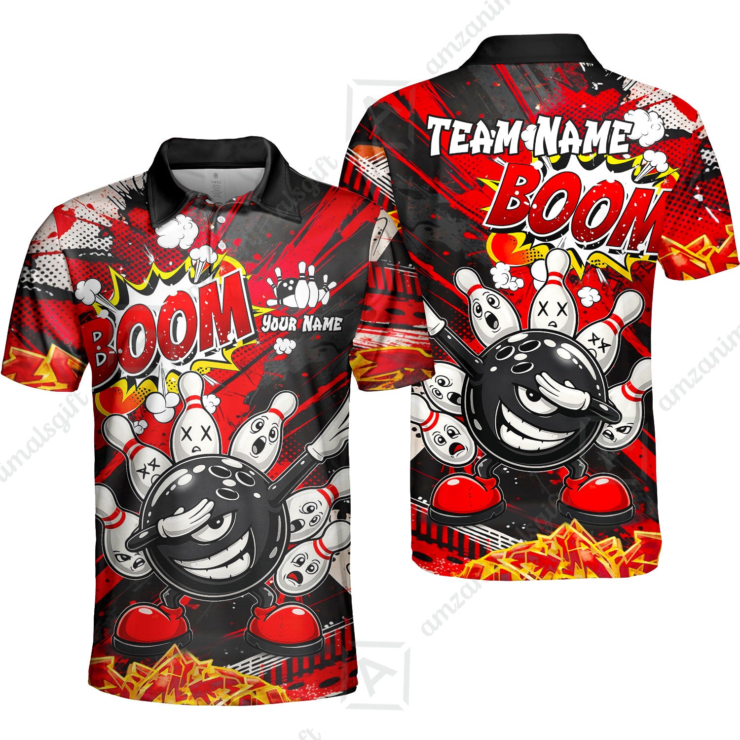 Customized Bowling Unisex Polo Shirt, Boom Bowling Angry Ball Screaming Pins, Personalized Name And Team Name For Bowlers
