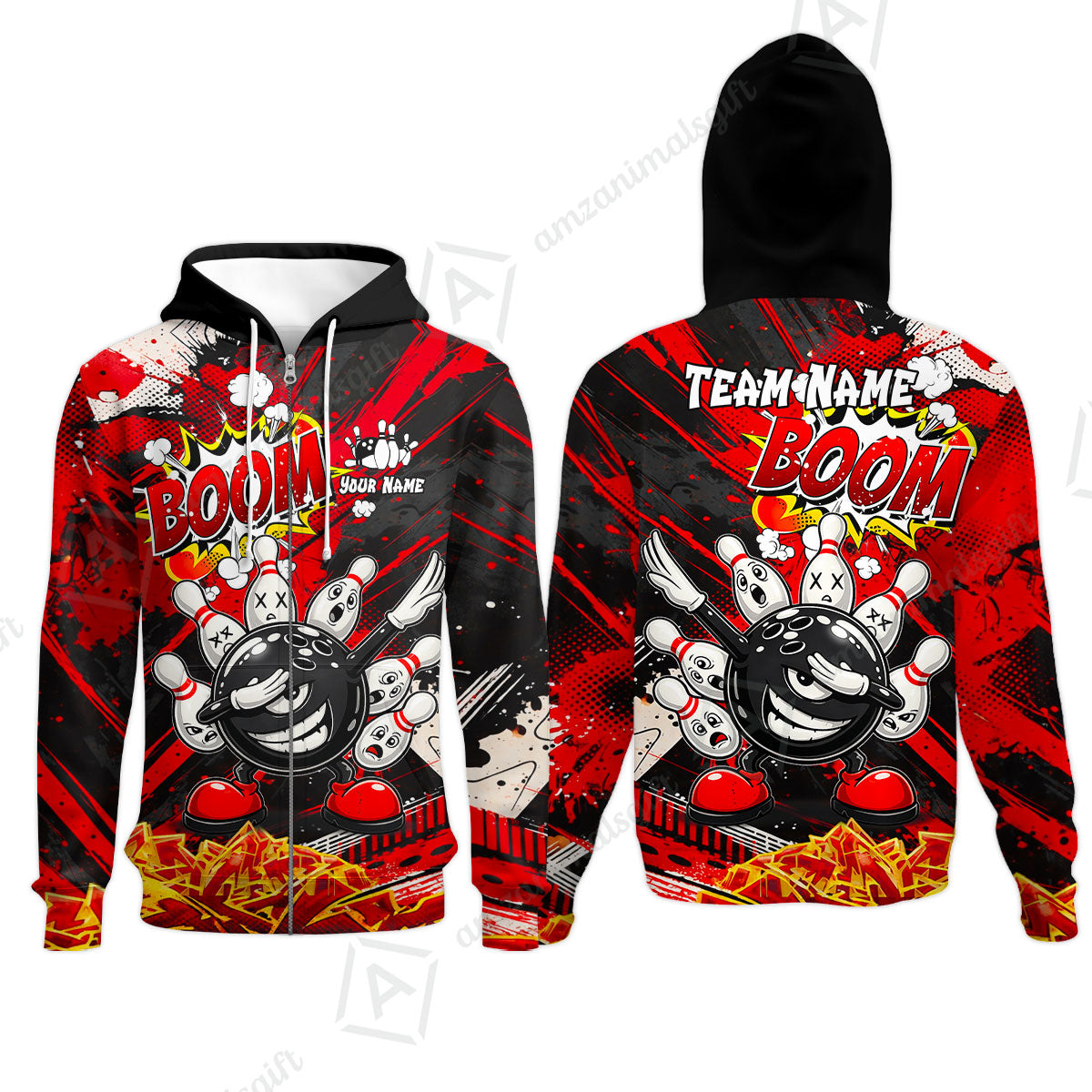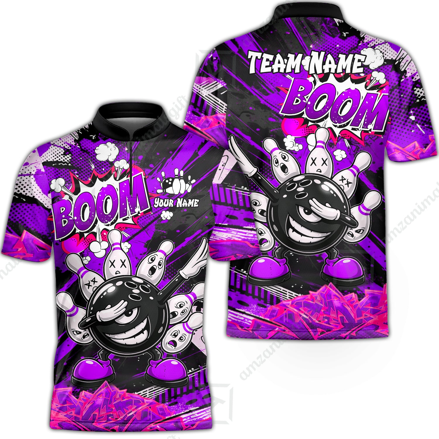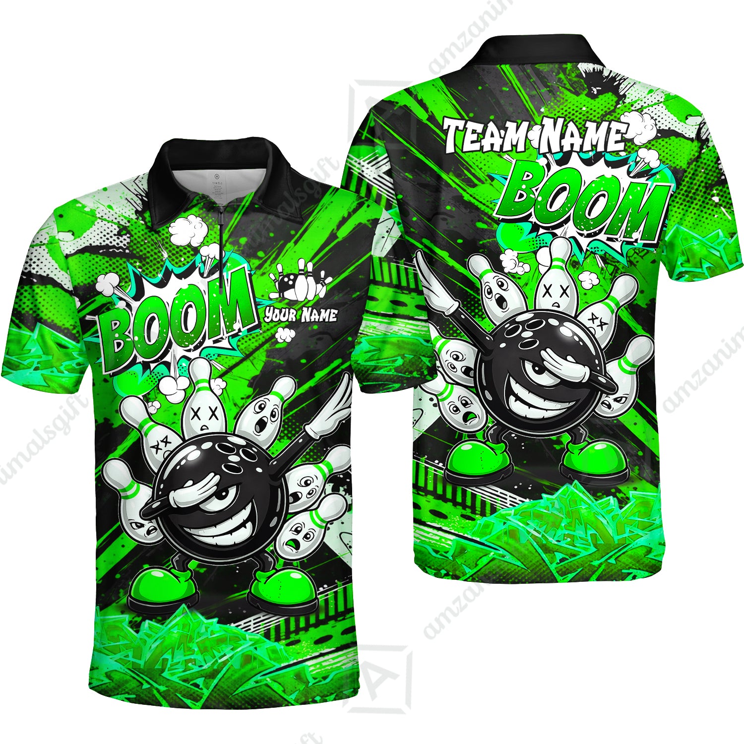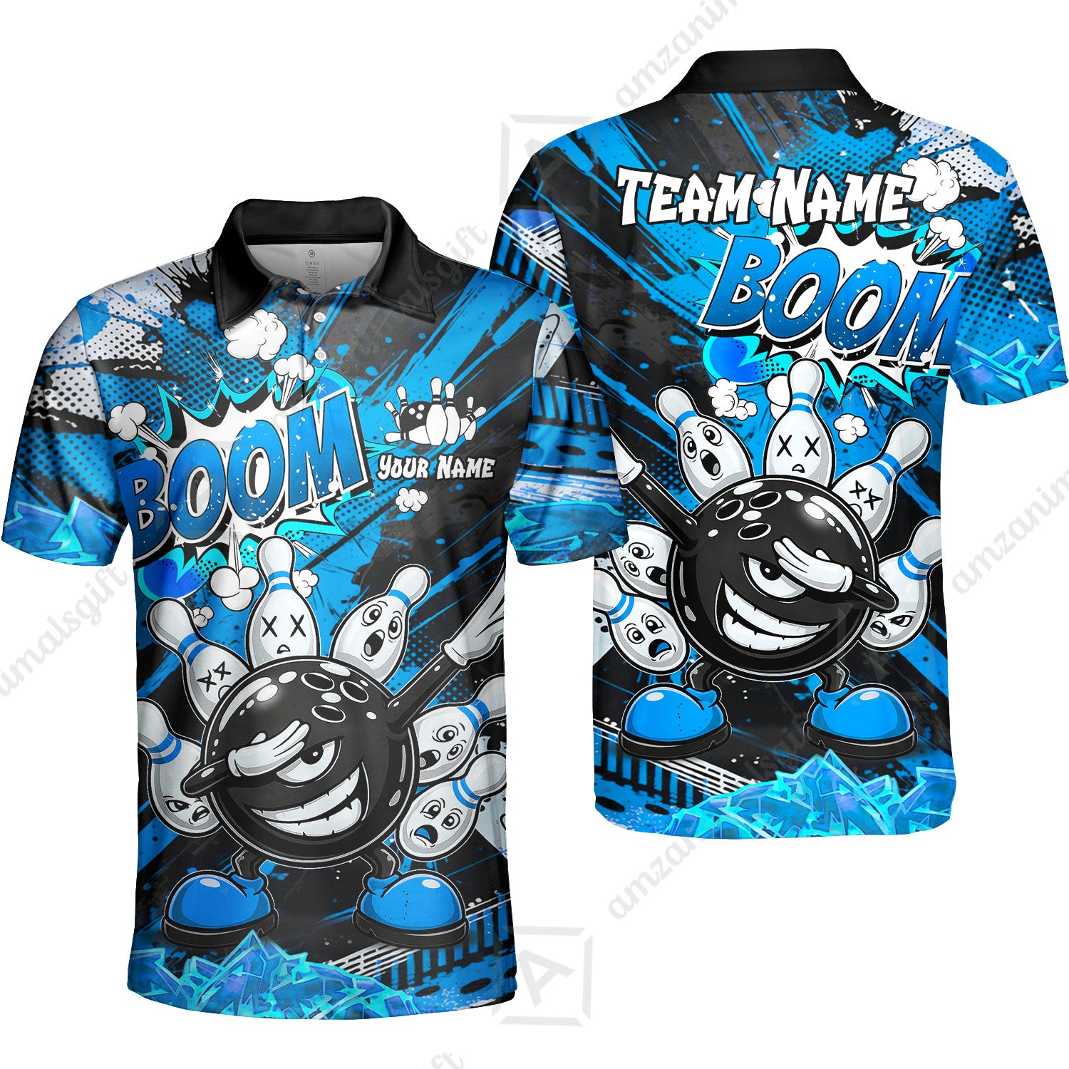 Customized Bowling Unisex Polo Shirt, Boom Bowling Angry Ball Screaming Pins, Personalized Name And Team Name For Bowlers