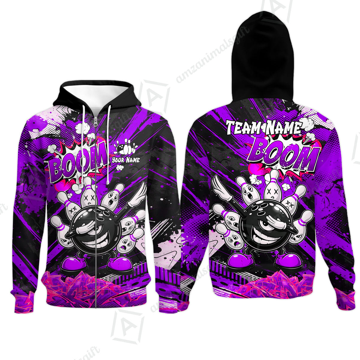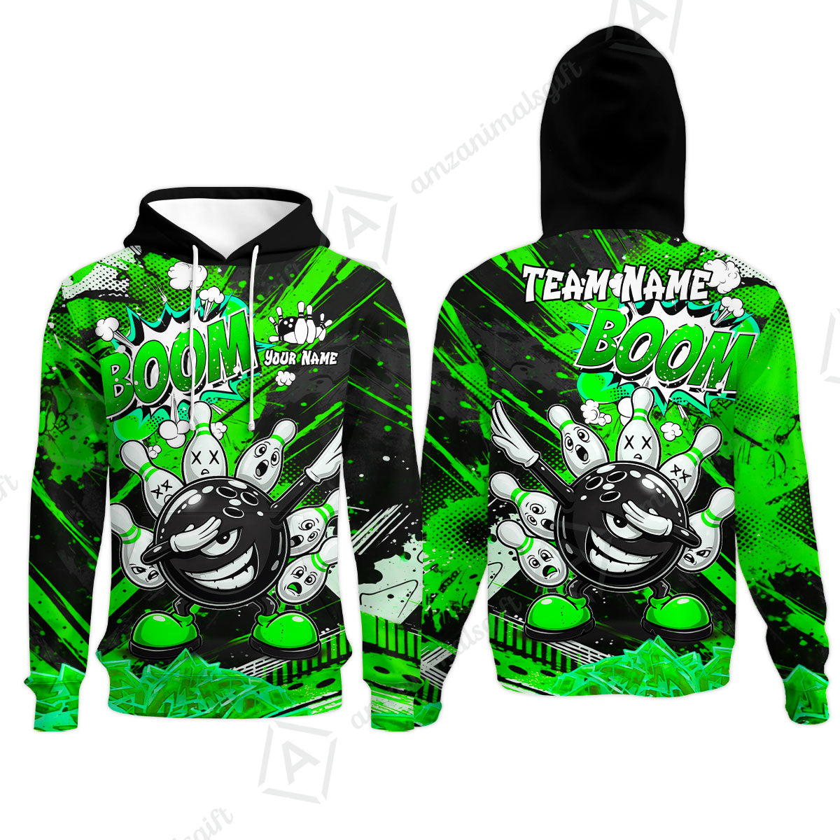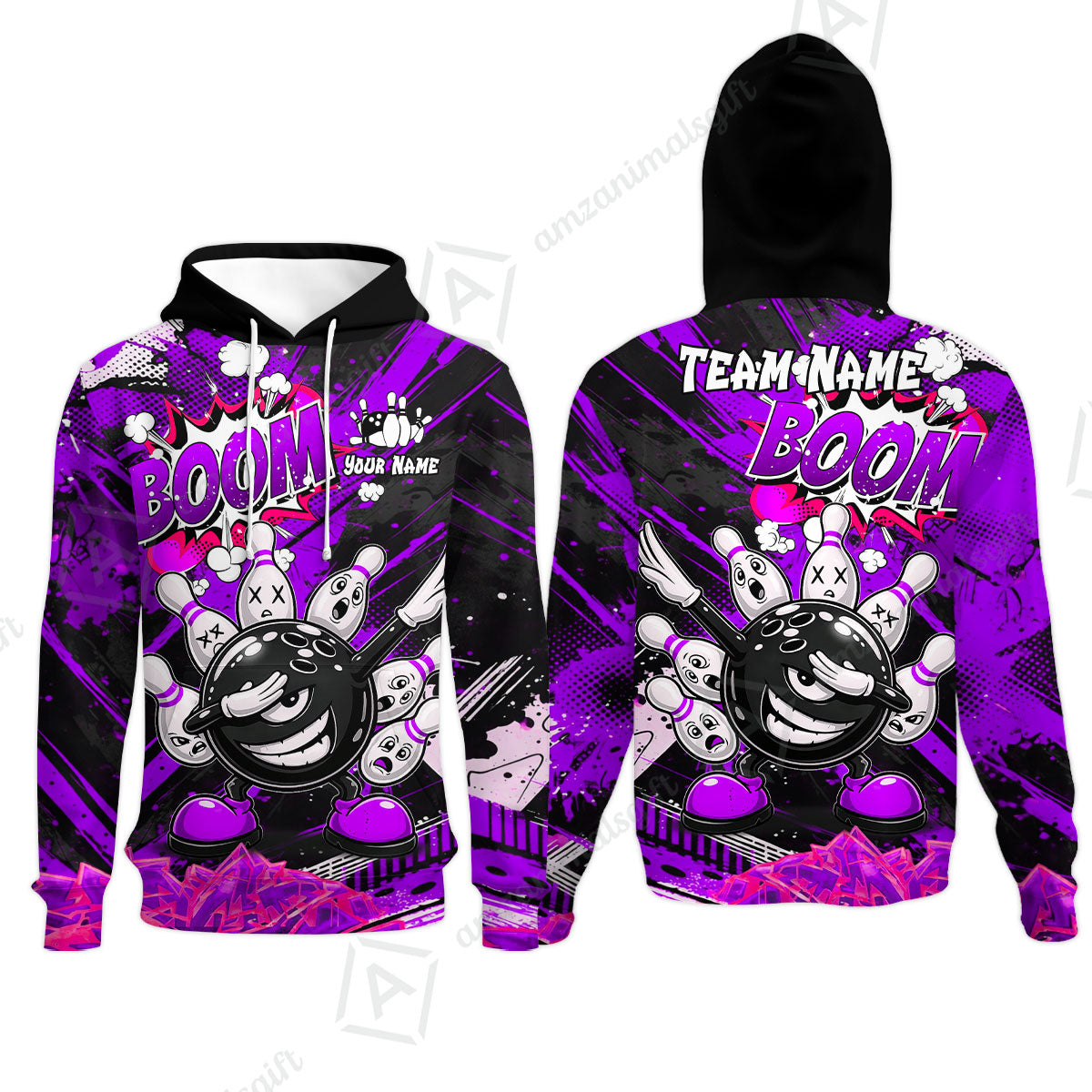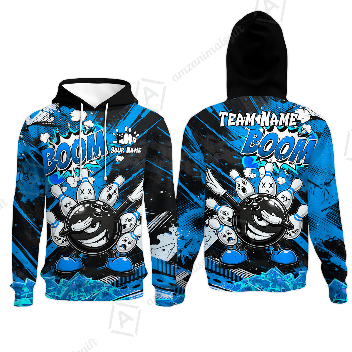 Customized Bowling Unisex Polo Shirt, Boom Bowling Angry Ball Screaming Pins, Personalized Name And Team Name For Bowlers