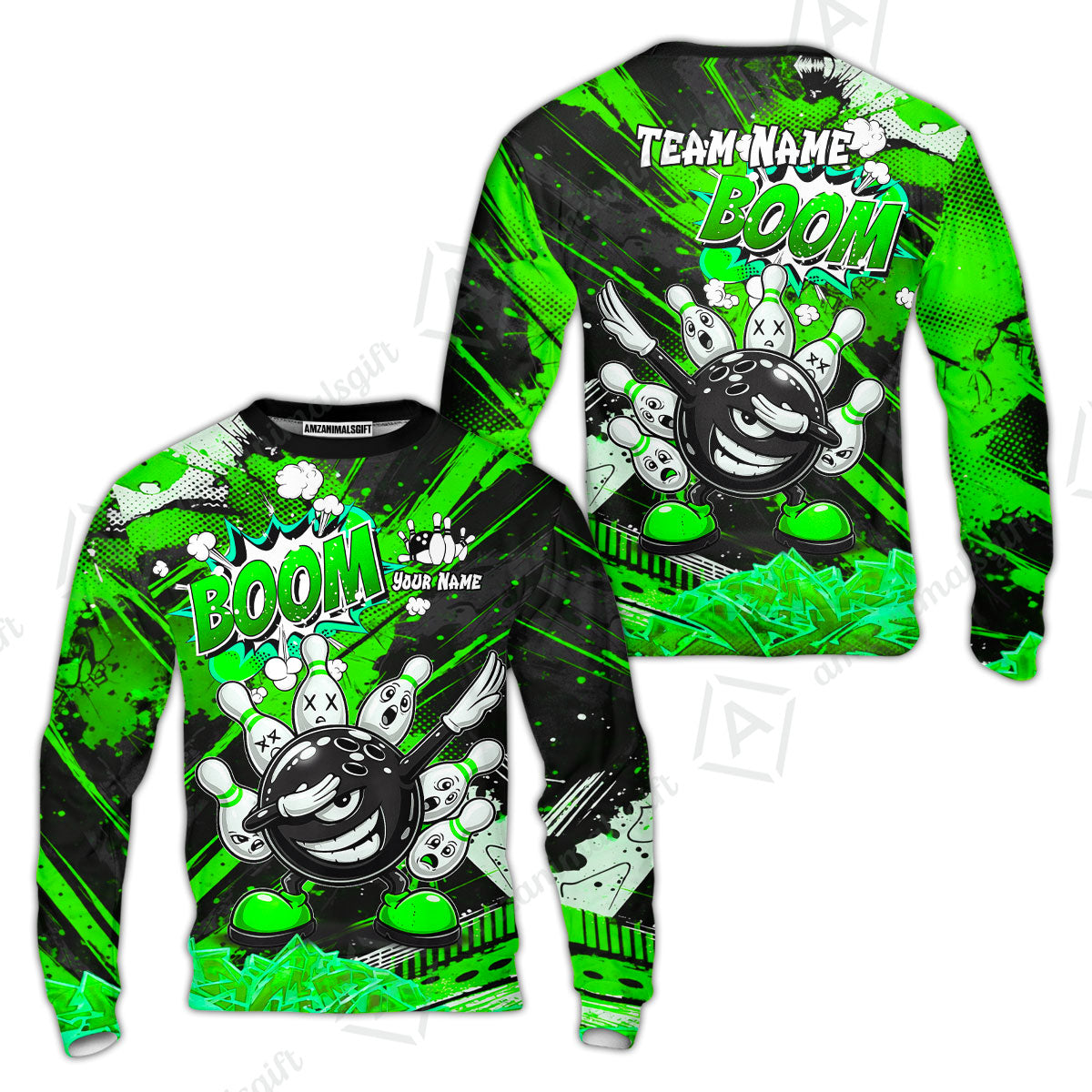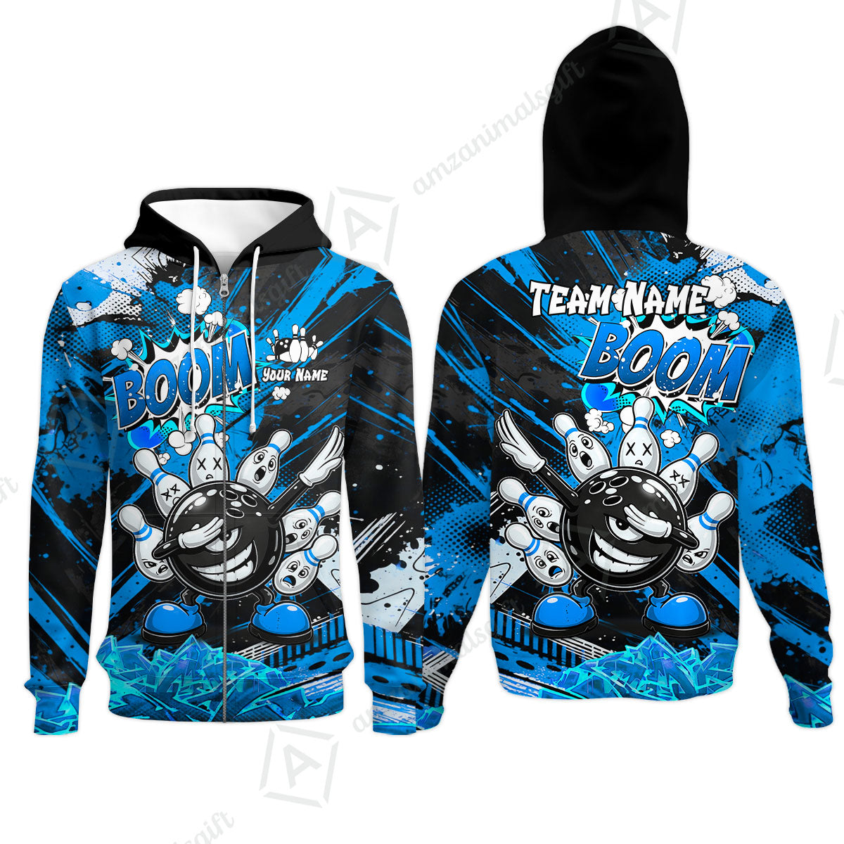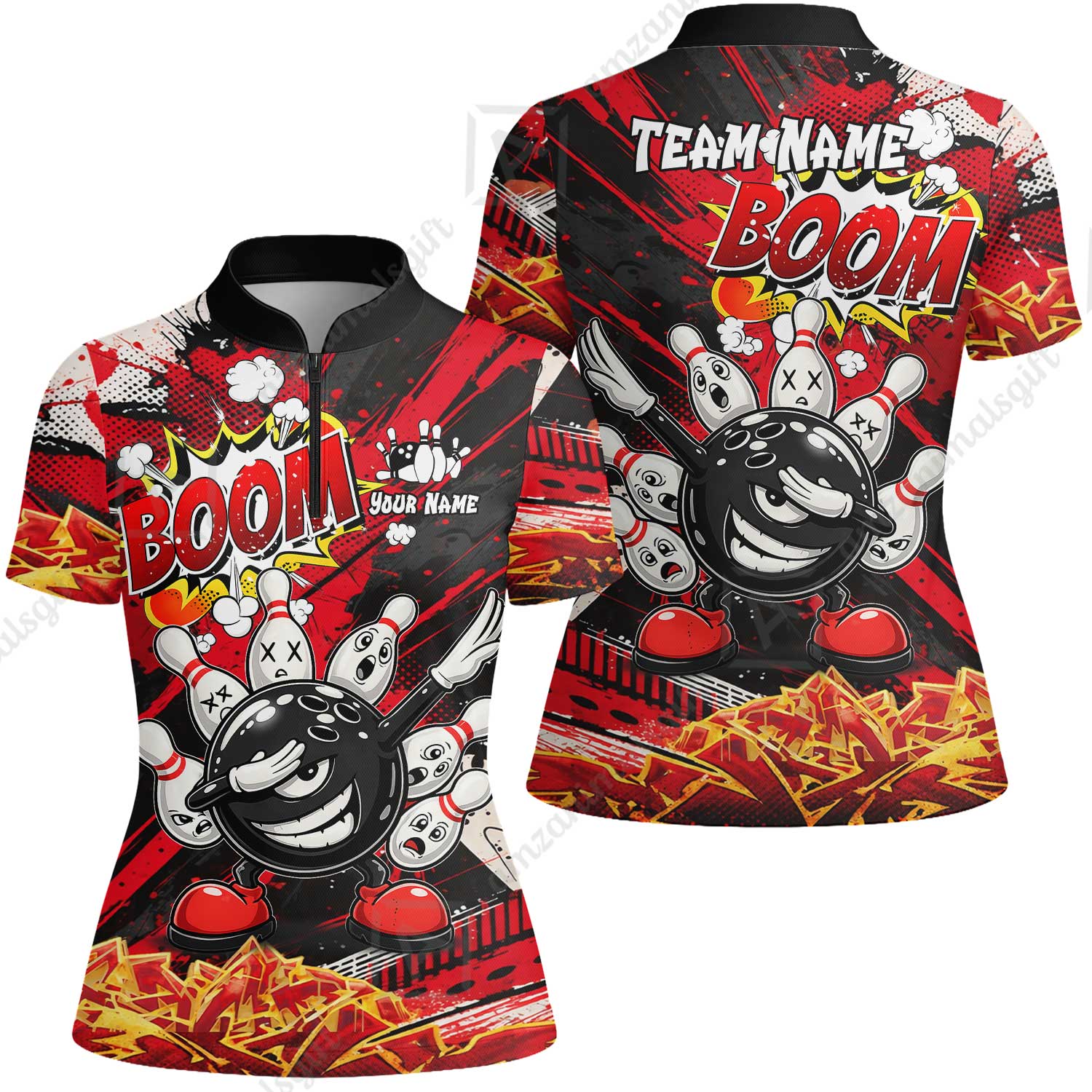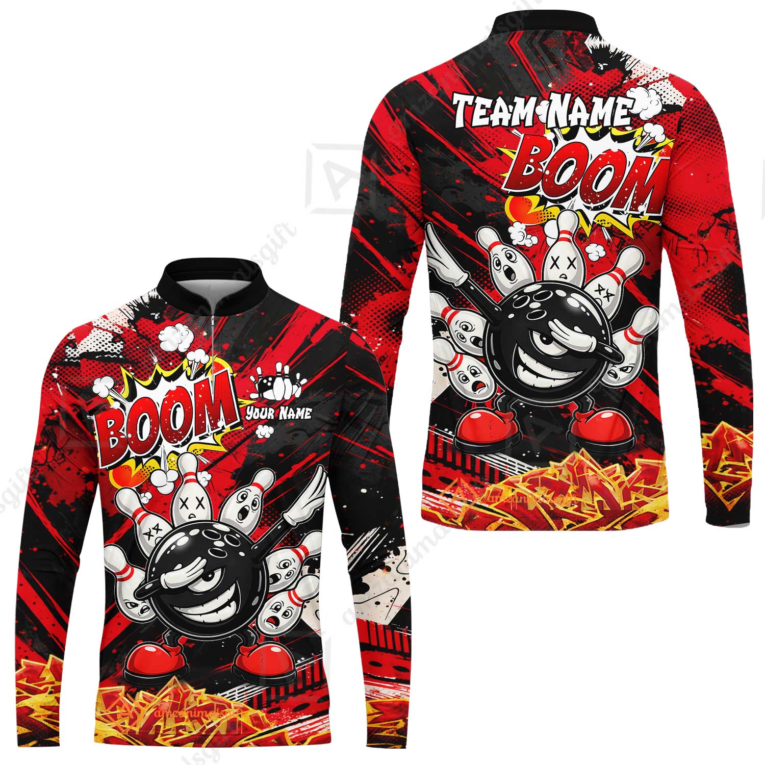 Customized Bowling Unisex Polo Shirt, Boom Bowling Angry Ball Screaming Pins, Personalized Name And Team Name For Bowlers