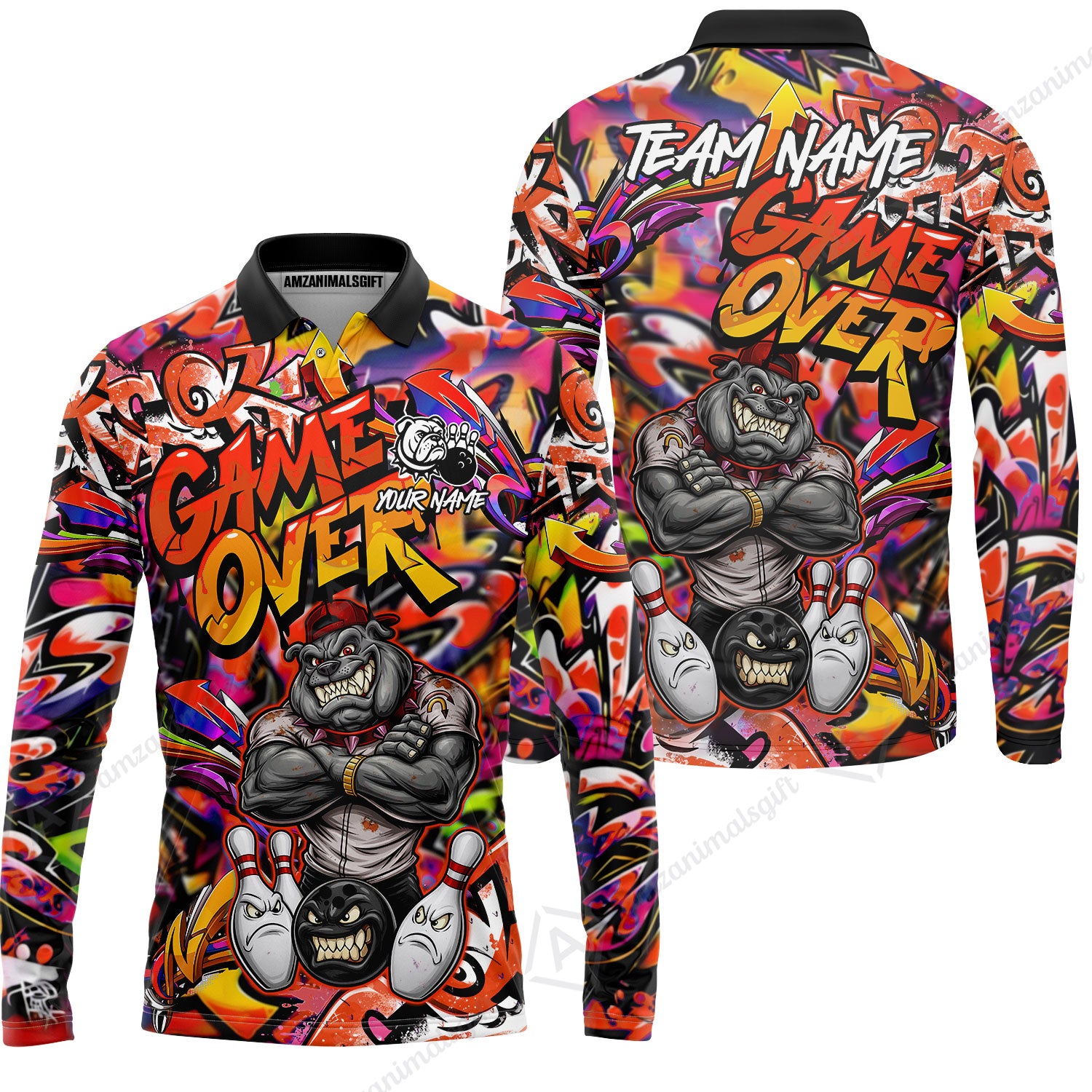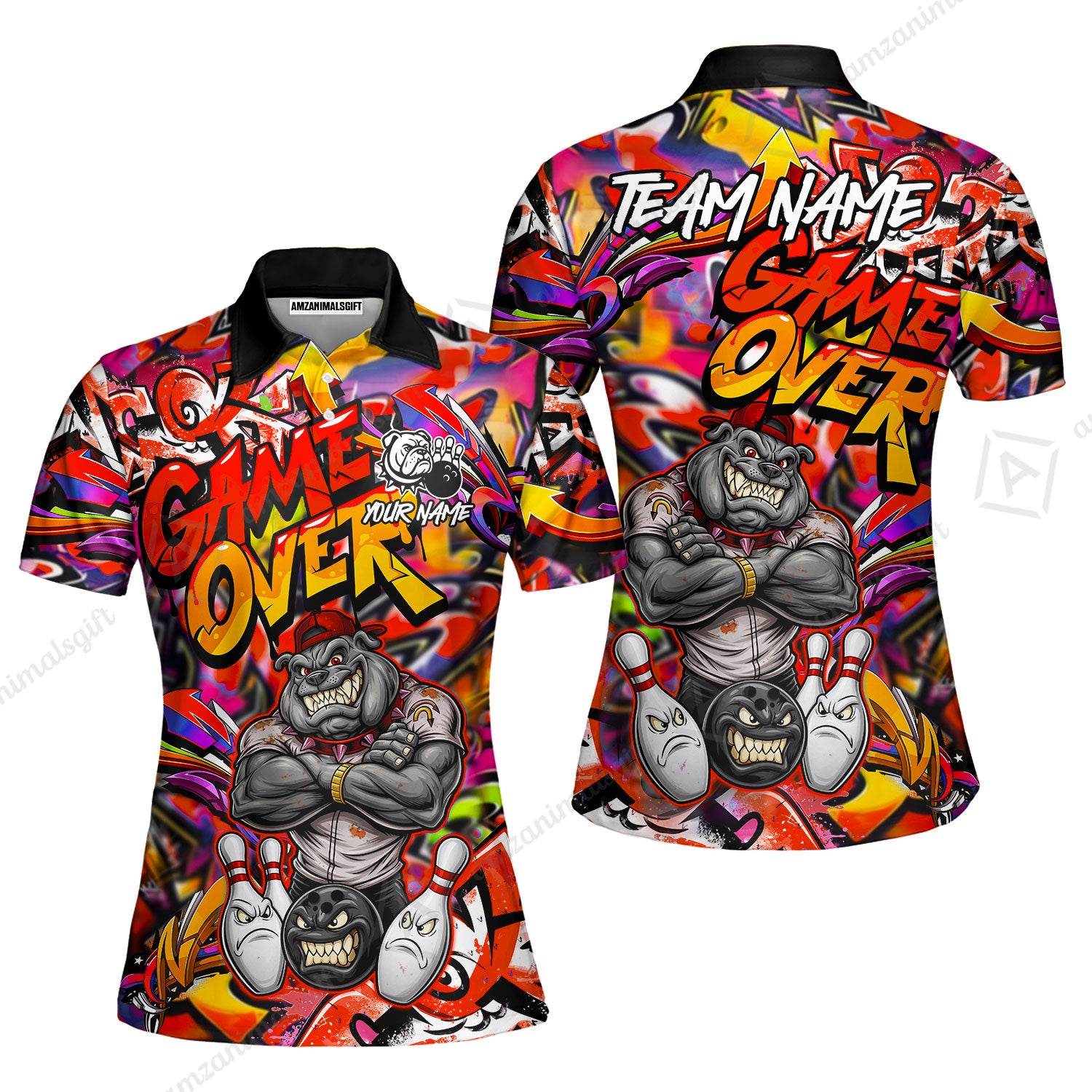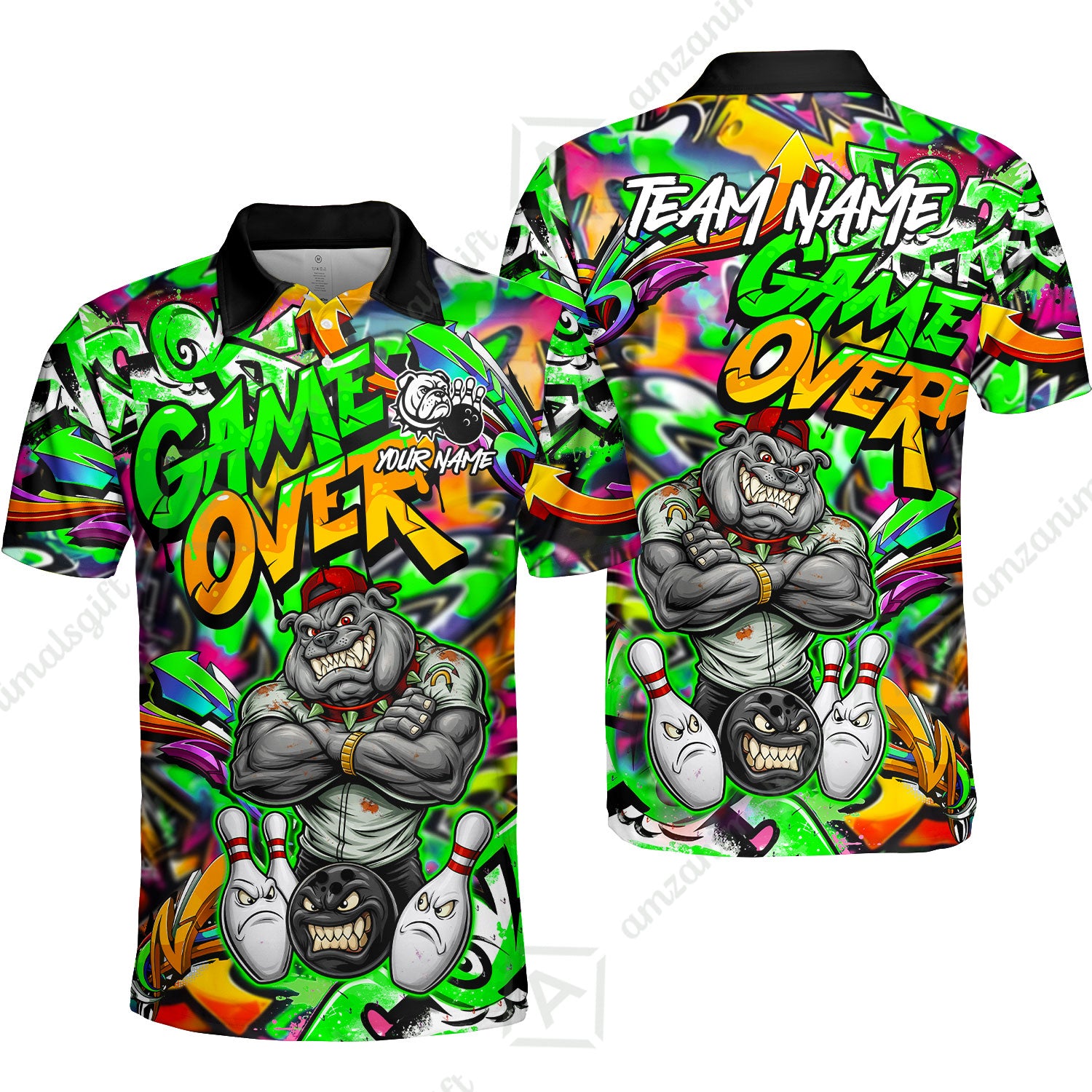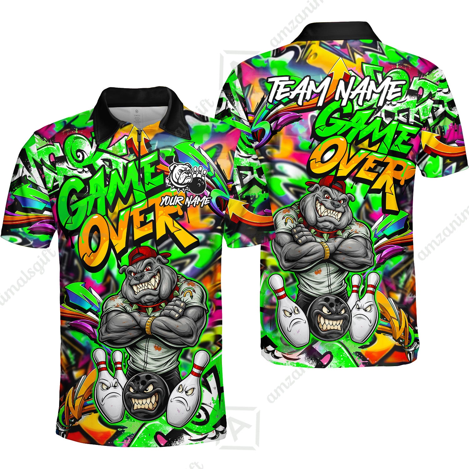 Customized Bowling Unisex Polo Shirt, Cool BullDog With Angry Bowling Game Over - Personalized Name And Team Name