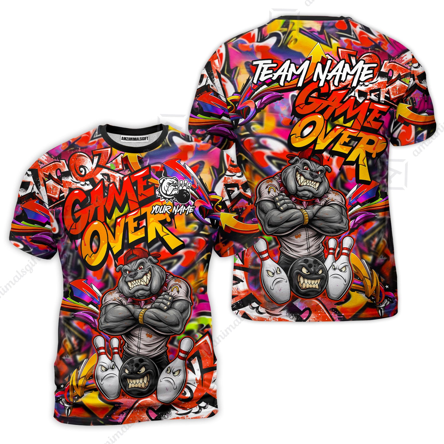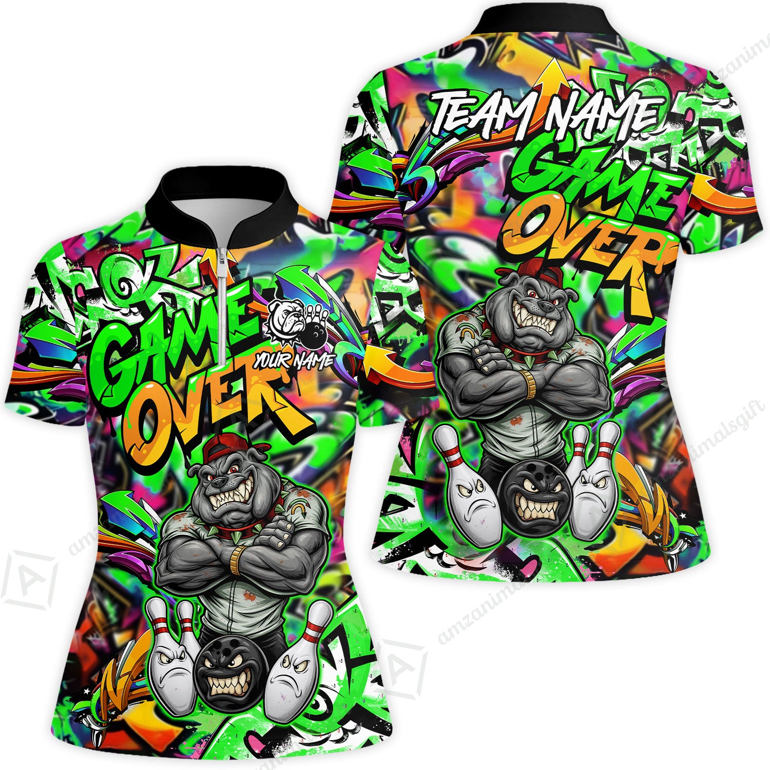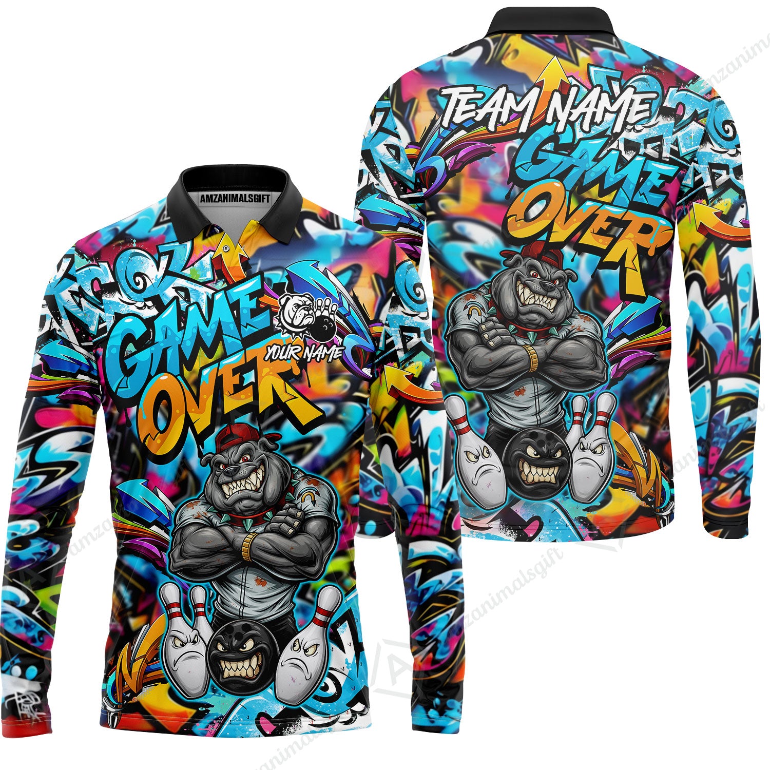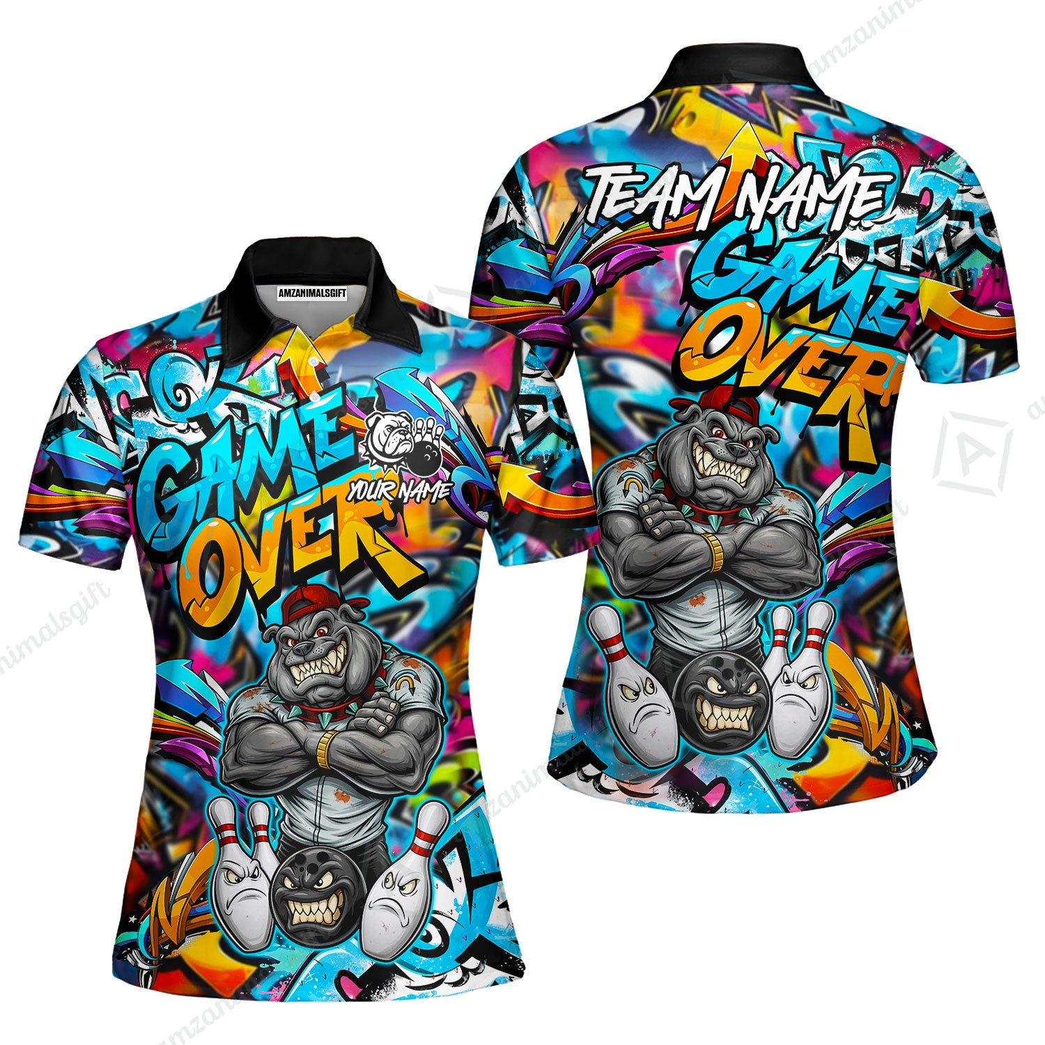 Customized Bowling Unisex Polo Shirt, Cool BullDog With Angry Bowling Game Over - Personalized Name And Team Name
