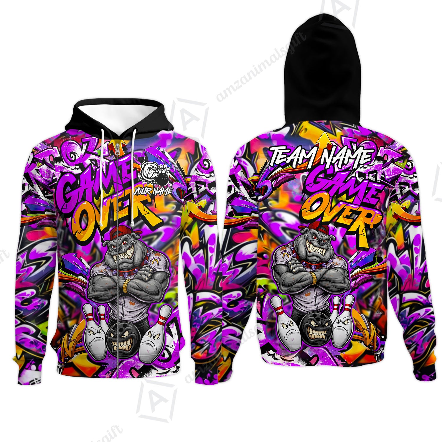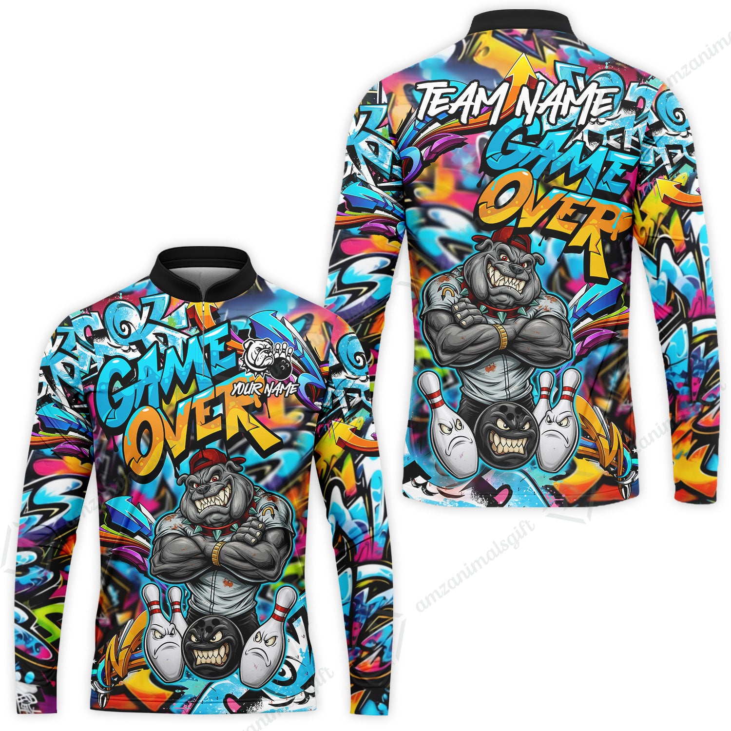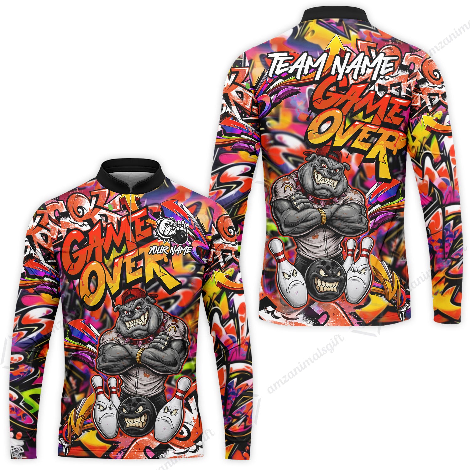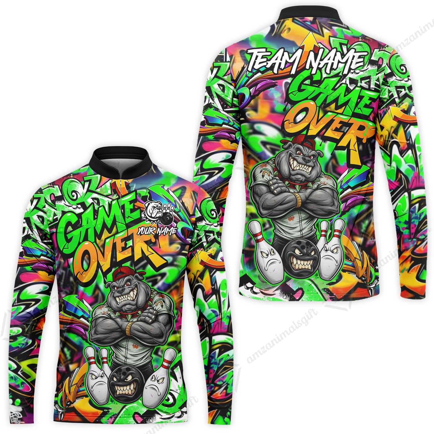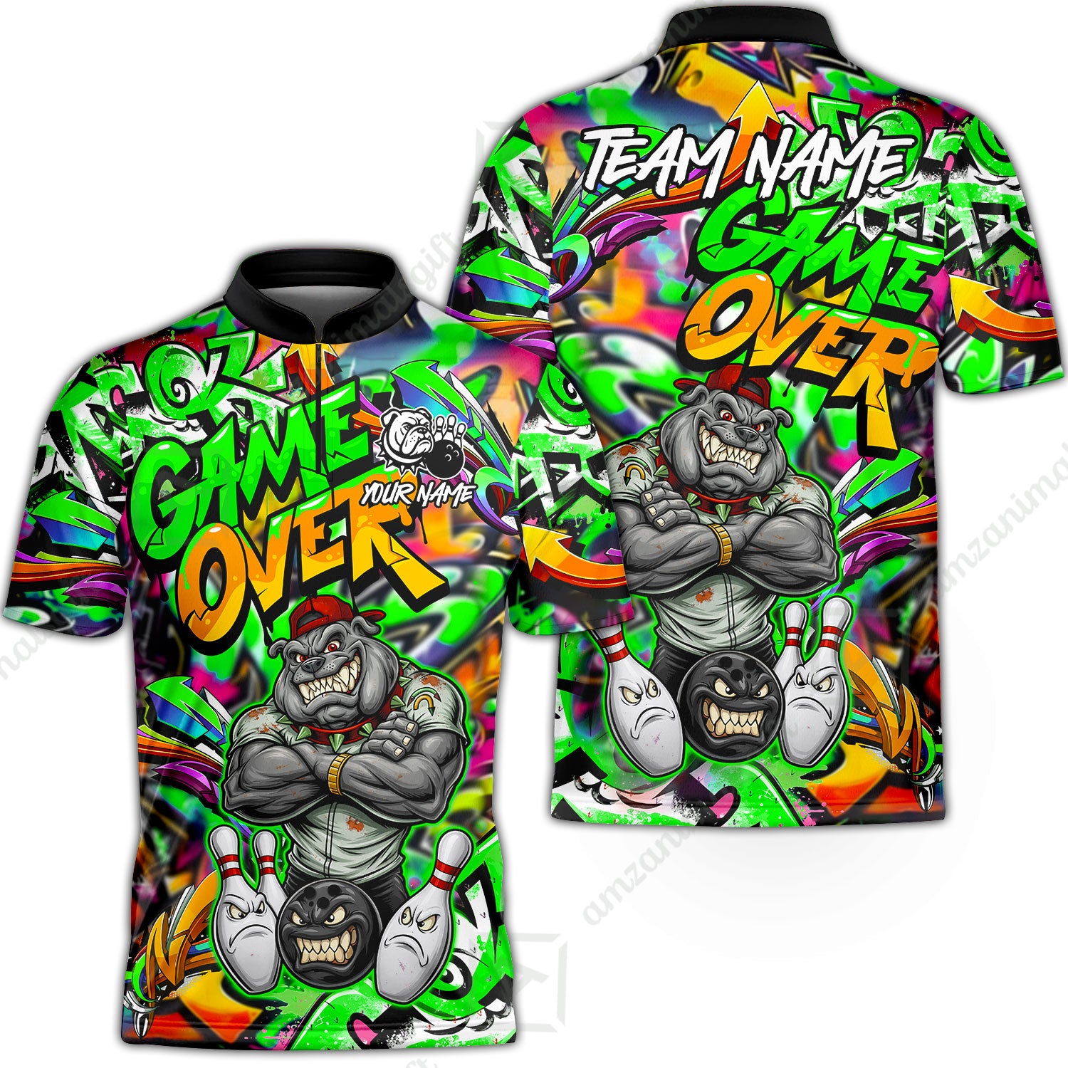 Customized Bowling Unisex Polo Shirt, Cool BullDog With Angry Bowling Game Over - Personalized Name And Team Name